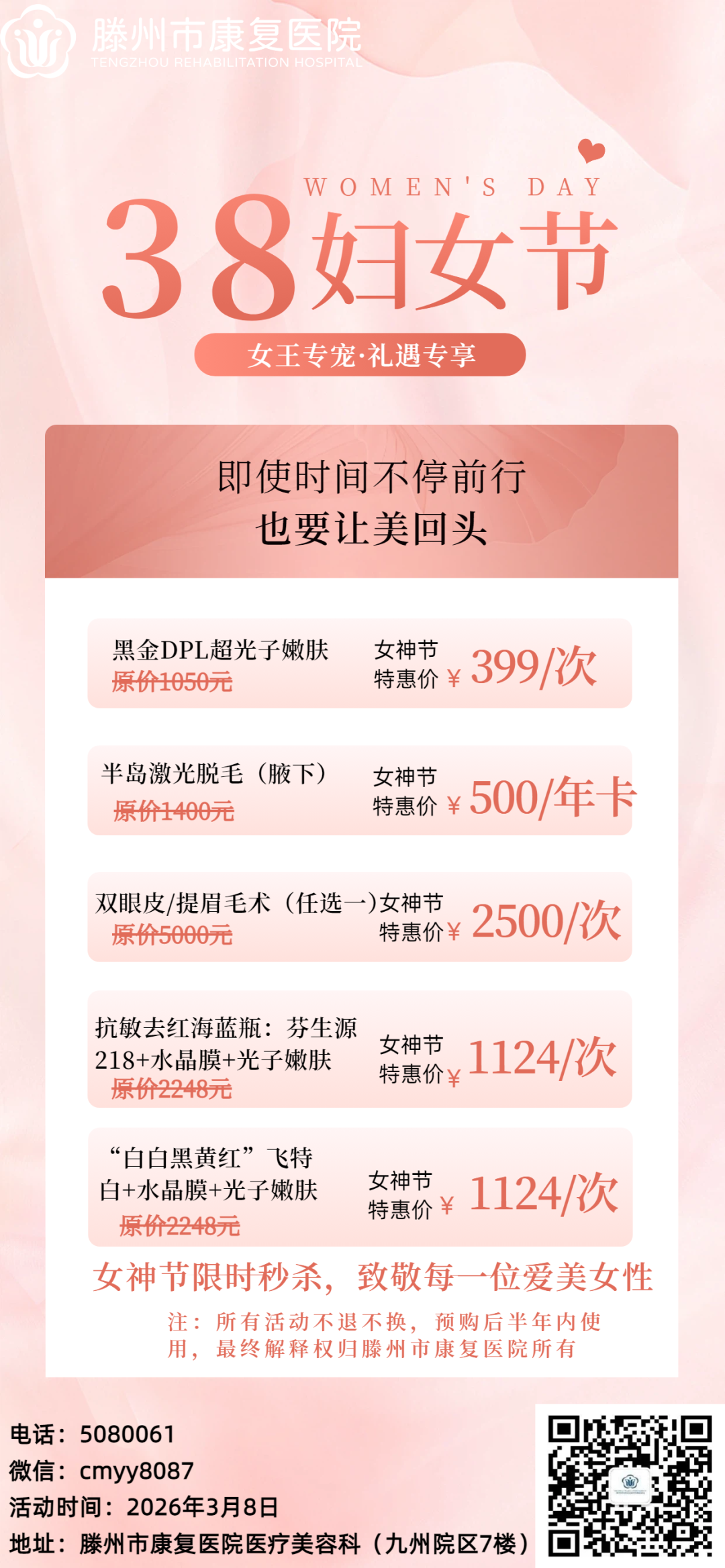滕州市康复医院医疗美容中心妇女节活动重磅来袭