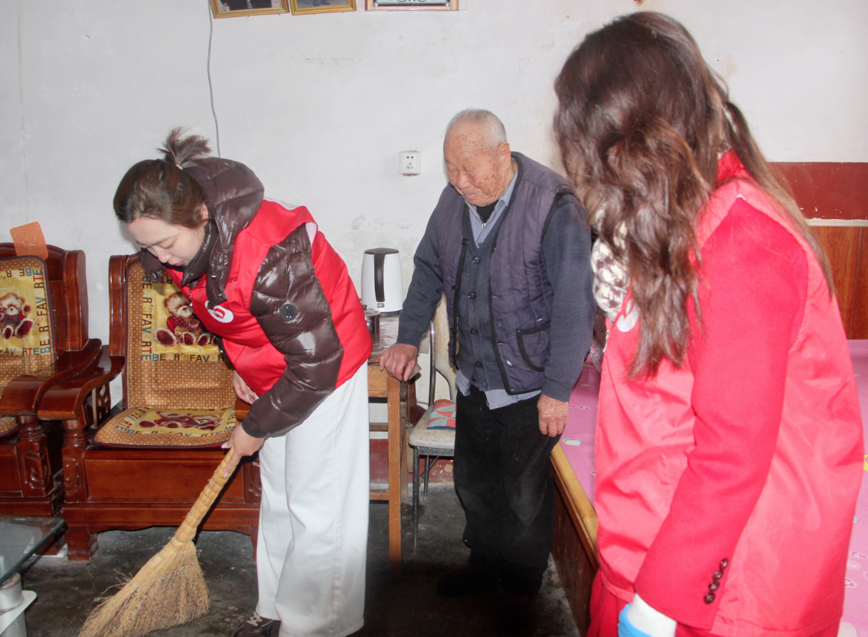环境整治结束后,志愿服务队专程前往95岁抗美援朝老兵饶帮学家中,开展走访慰问,为老人送去关怀与温暖,聆听红色故事,传承英雄精神。
