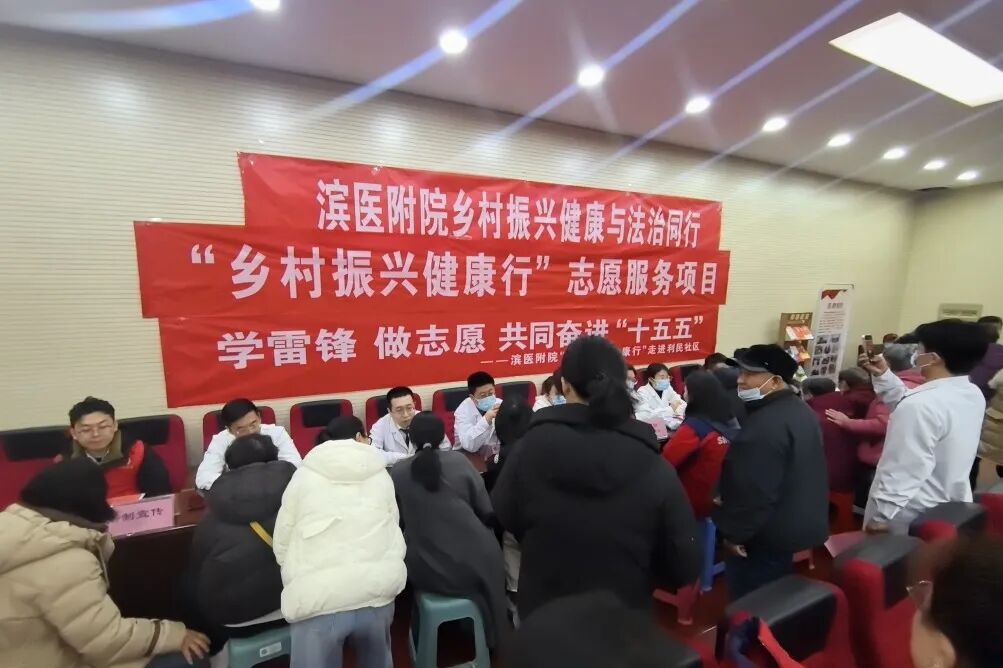 为大力弘扬雷锋精神、志愿精神,助力健康中国建设与乡村振兴战略,3月5日,滨州医学院附属医院“乡村振兴健康行”青年志愿服务队走进滨城区市西街道利民社区,开展内容丰富、形式多样的综合惠民服务活动,将优质医疗资源和暖心关怀送到居民家门口。