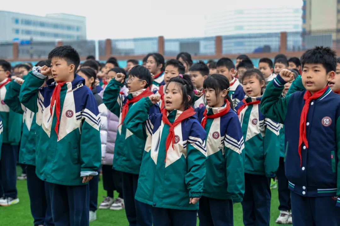 在大队辅导员李丹的带领下,全体学生举起右拳庄严宣誓,铿锵有力的誓言回荡在校园上空,彰显着怀瑾少年的责任与担当。