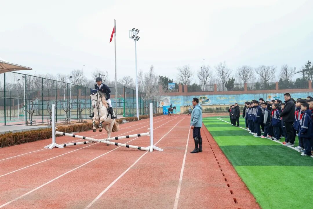 典礼最后,特色课程马术展示精彩上演,表演者们身着专业服饰,与骏马配合默契,展现出优雅的姿态与昂扬的精神,将马年“奋勇争先”的寓意展现得淋漓尽致,赢得了师生们的阵阵欢呼与掌声,也为开学典礼画上了圆满的句号。