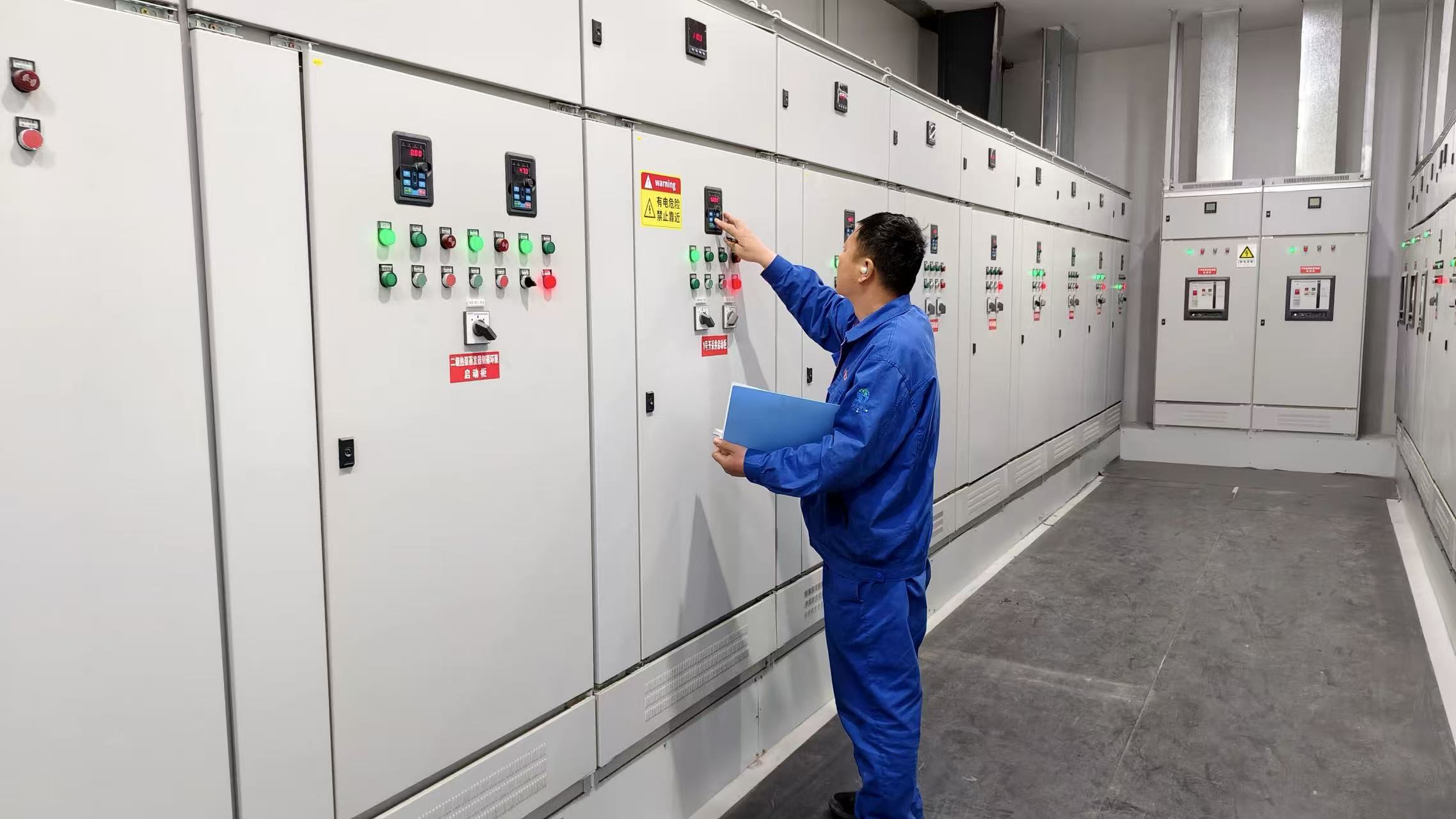 在地热能源站内,运维团队直面高负荷运行考验,7×24小时不间断值守,全力以赴满足大棚用热需求,多措并举筑牢坚实供热防线。通过及时开展过滤器滤芯维护保养,有效提升地热井供水流量与能源站供热效能;加密设备巡检频次,加大巡查力度,实时监测各项运行数据,精准把控系统运行态势;全面排查安全运行隐患,动态优化供热参数调节,确保供热系统在高用热负荷下安全、稳定、高效运转。