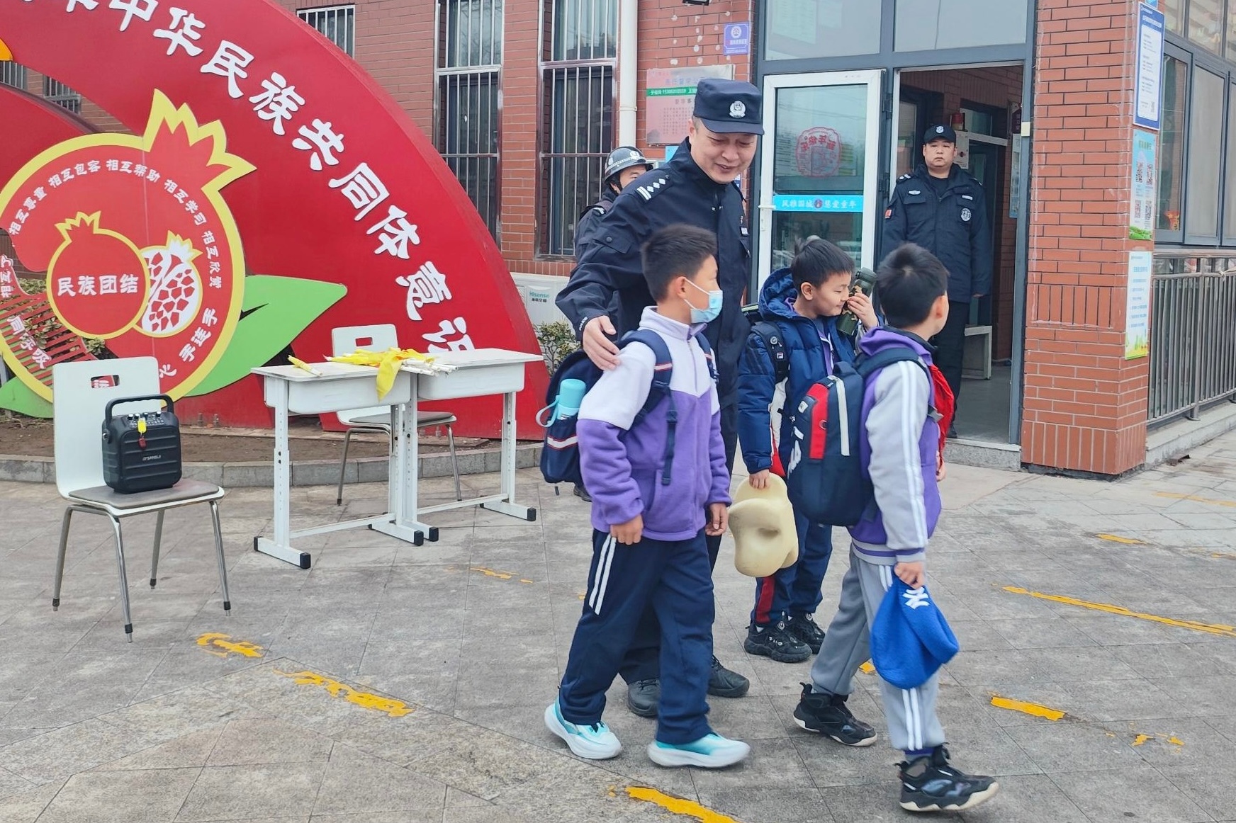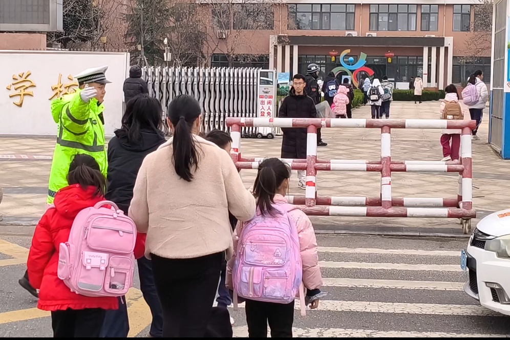 执勤民警辅警穿梭在人流、车流中,引导学生安全入校,提醒家长规范停车,耐心解答群众咨询,及时处置各类突发情况,用坚守筑牢校园安全第一道防线,为学子们的开学之路保驾护航。
