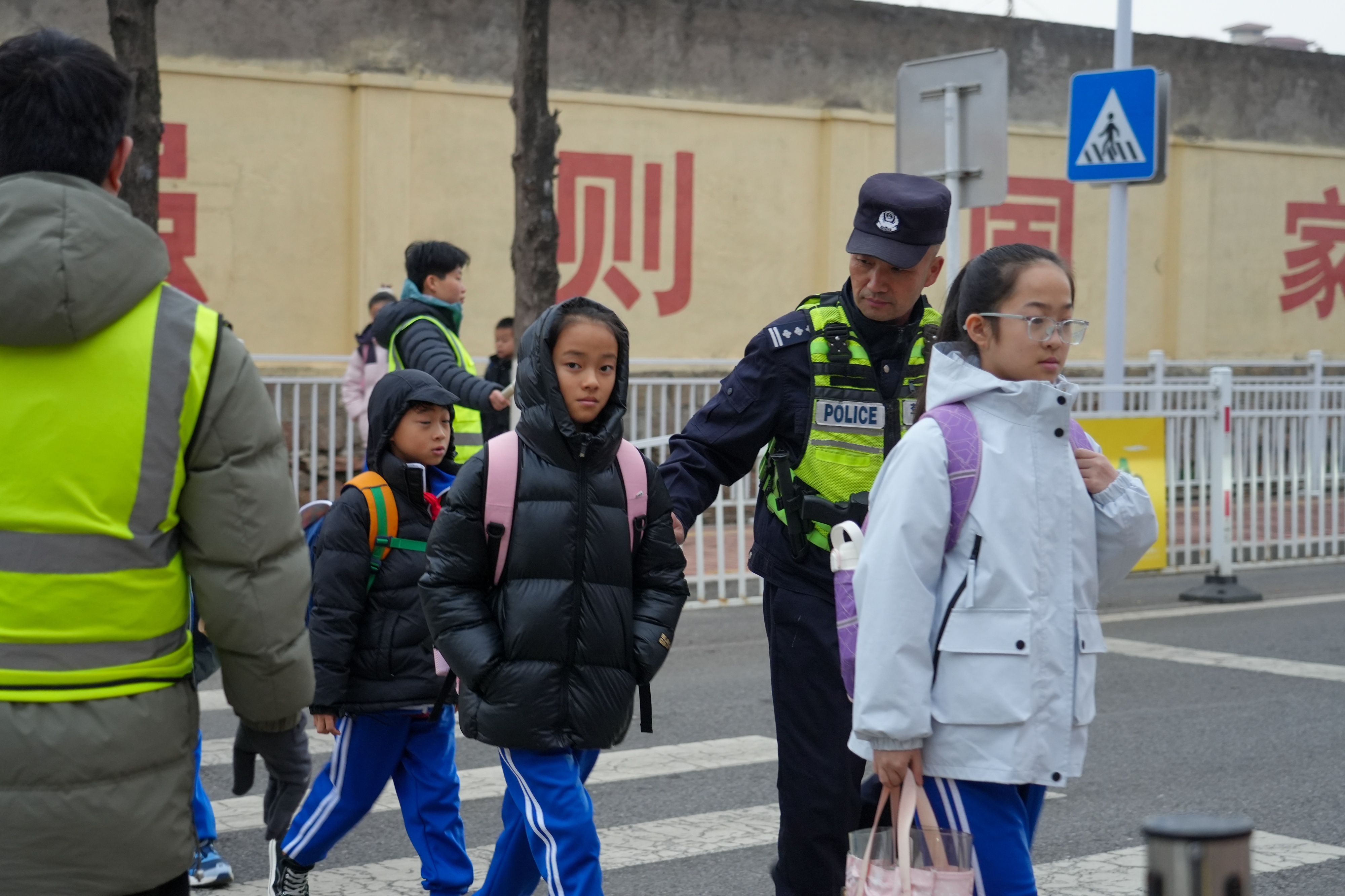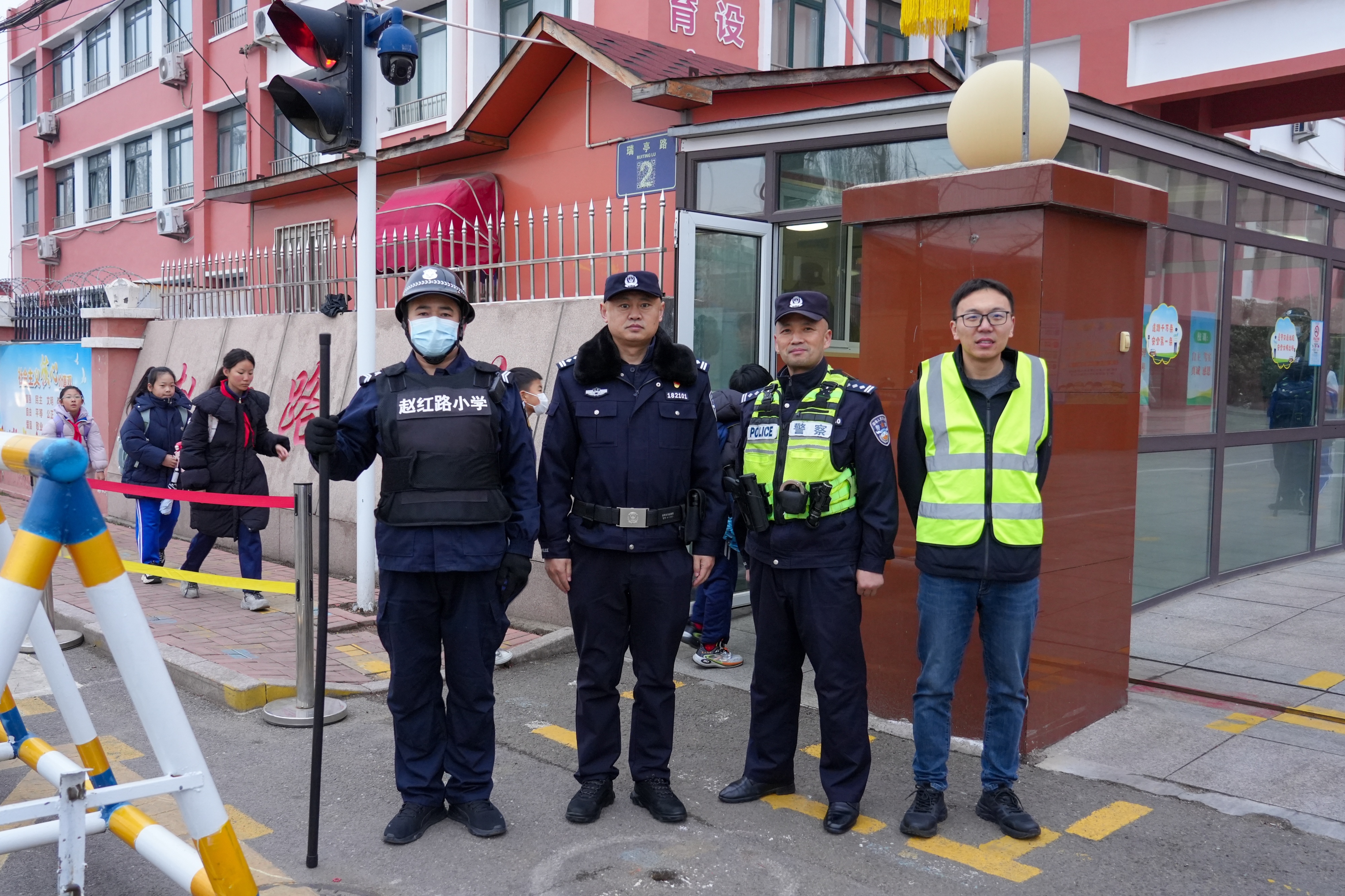 高峰护学不缺位,守好校园平安门
