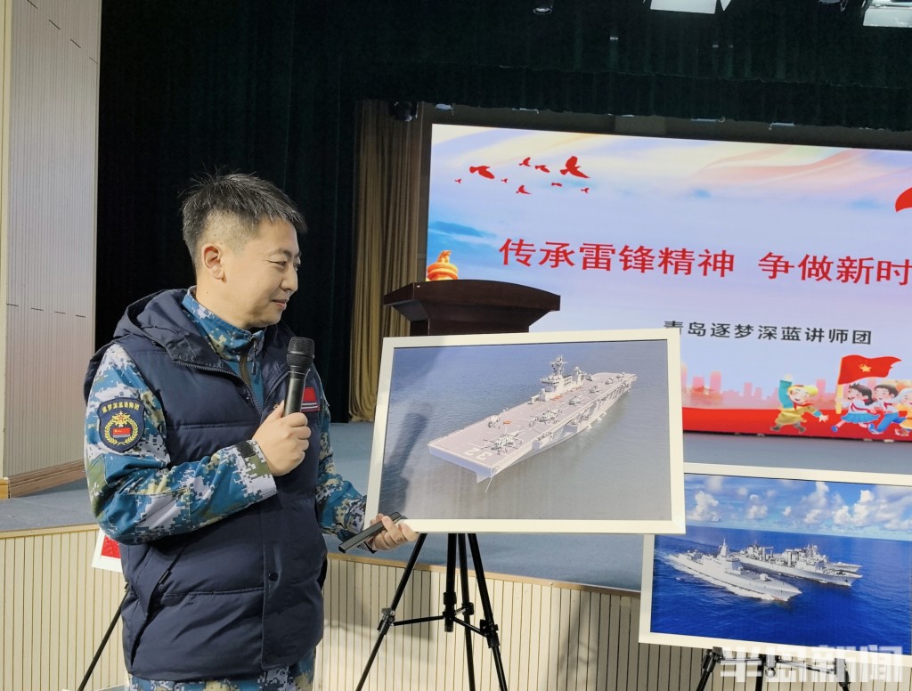 开学典礼上,学校特邀青岛市“逐梦深蓝”红领巾讲师团讲师谢晓飞,为队员们带来学雷锋精神大思政课。将雷锋同志“干一行爱一行、专一行精一行”的求真精神与边防战士驻守边疆的坚韧精神相结合,激励队员们在探索真理的道路上脚踏实地、勇毅前行。