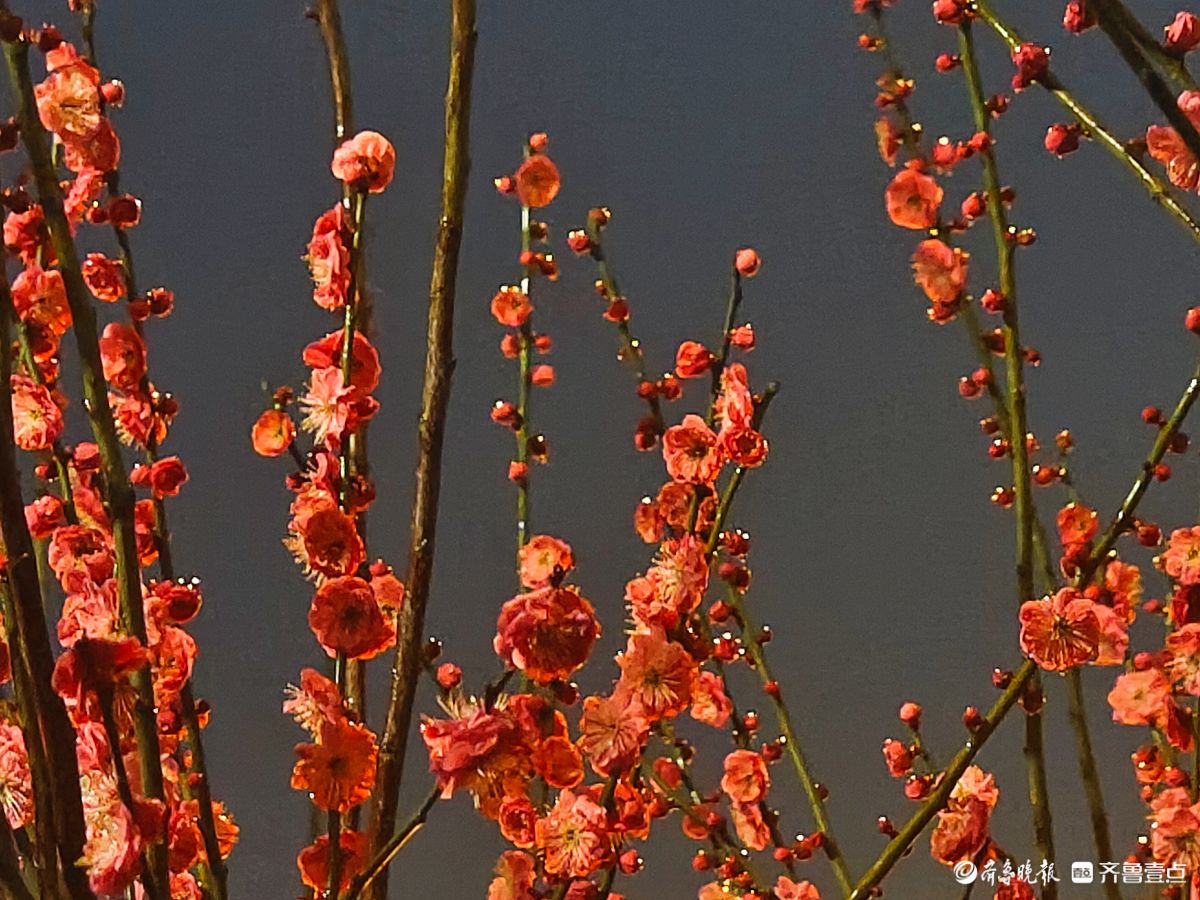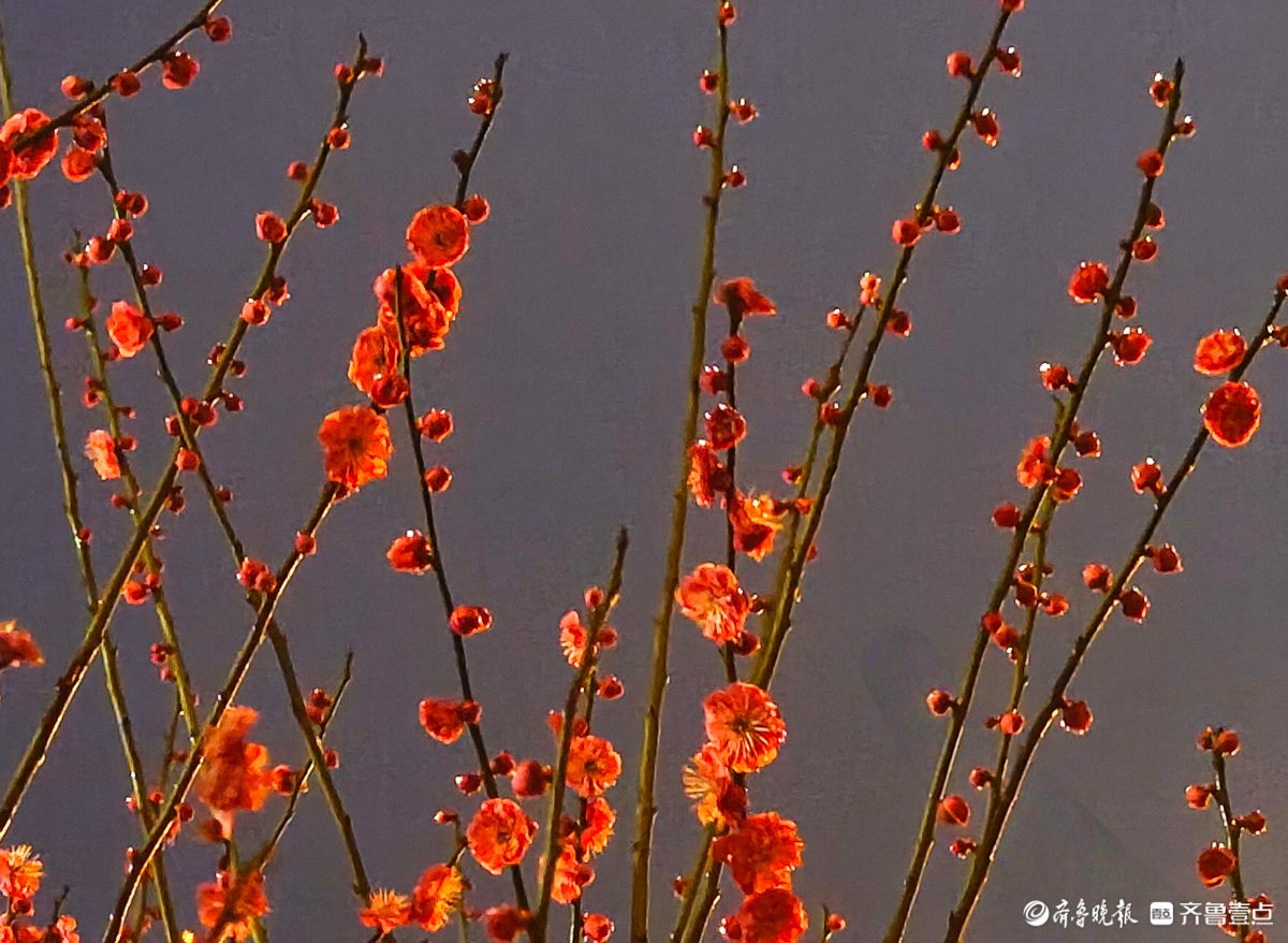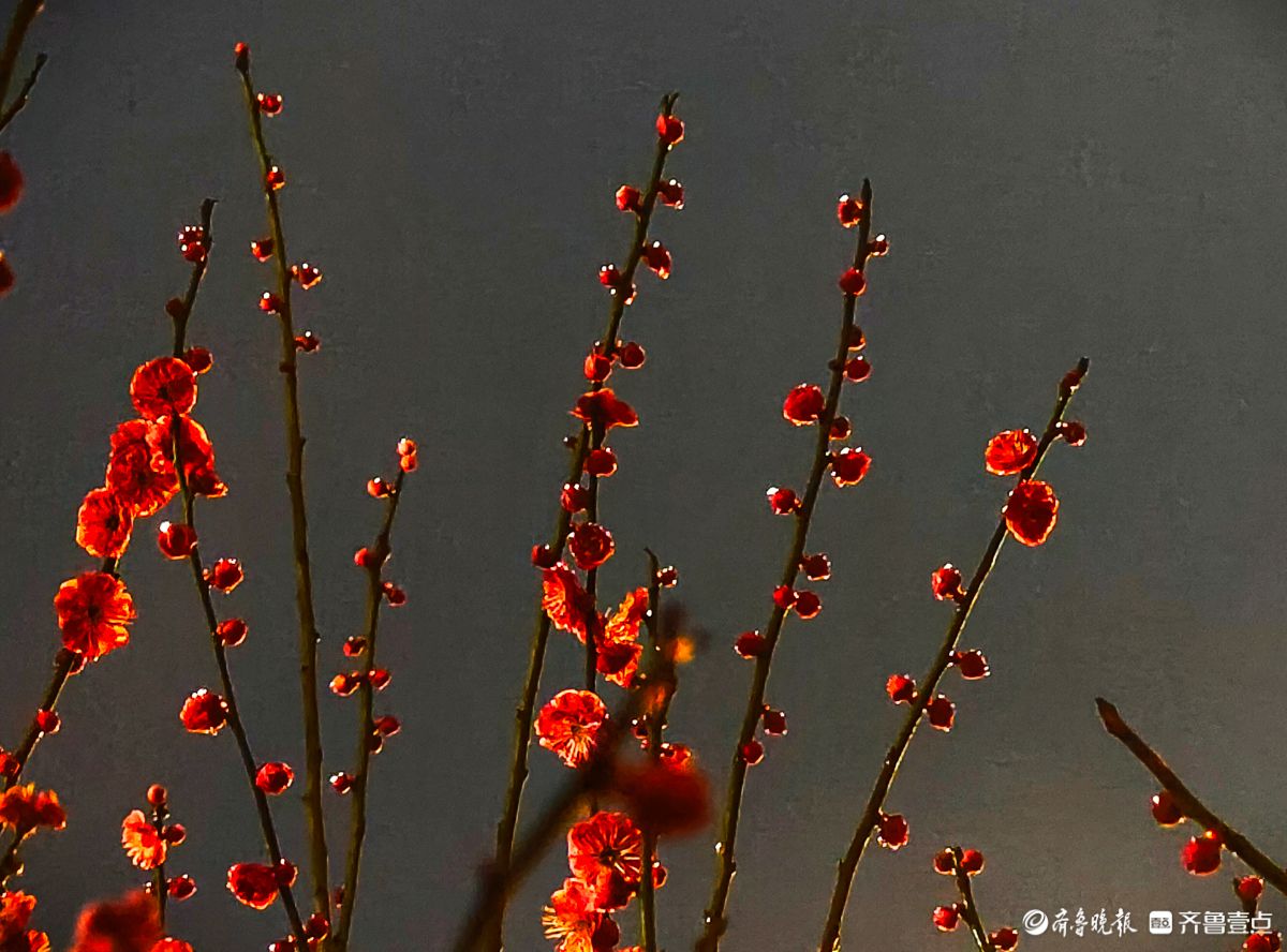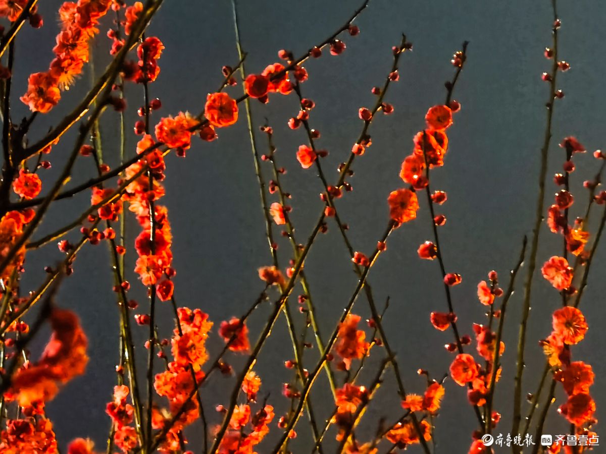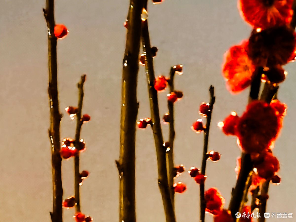 昨夜,春雨淅淅沥沥洒落,小区里的红梅在夜色中愈显娇艳。那枝头的花朵,好似被春雨轻柔摩挲,陶然地绽放着。高军摄