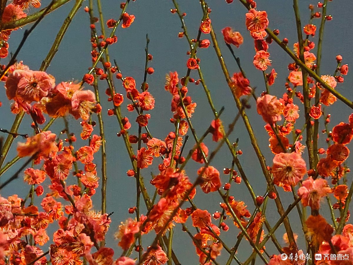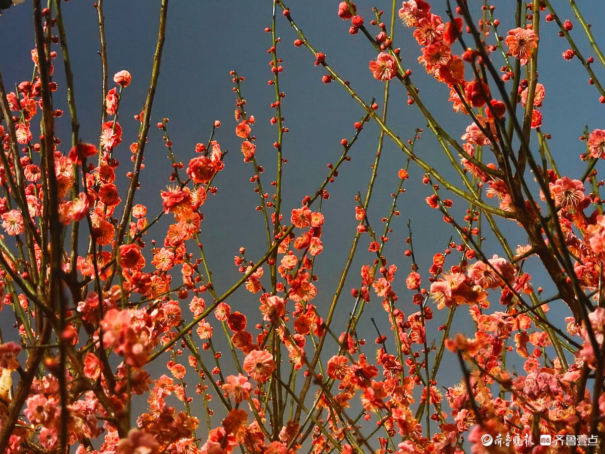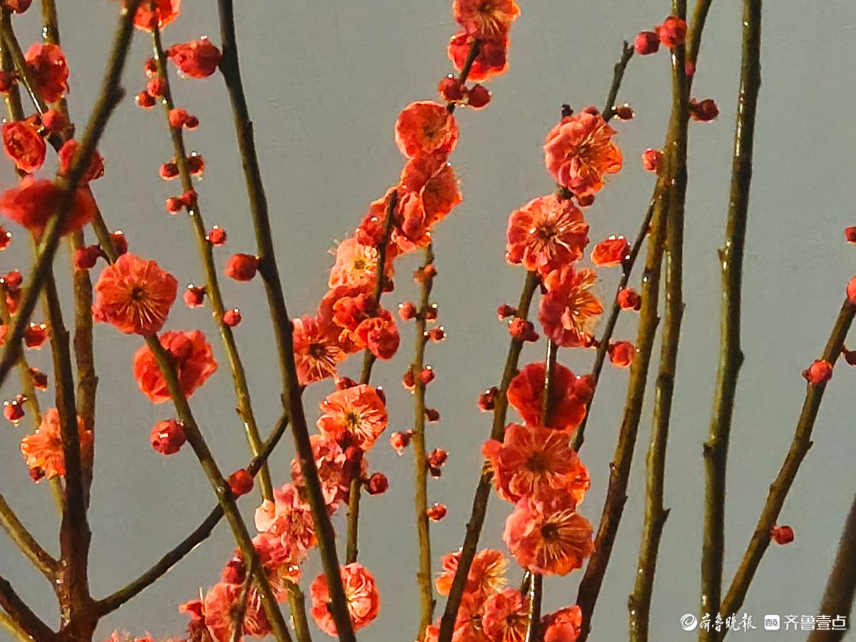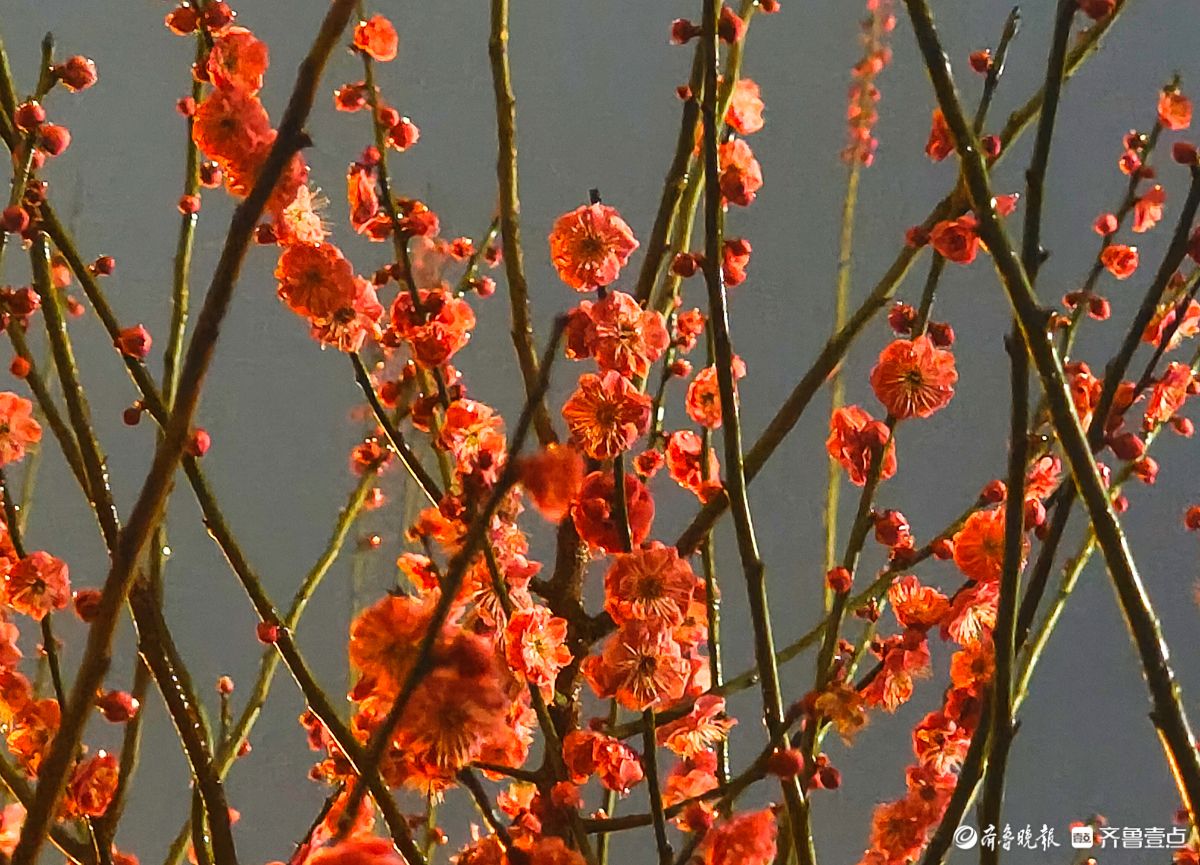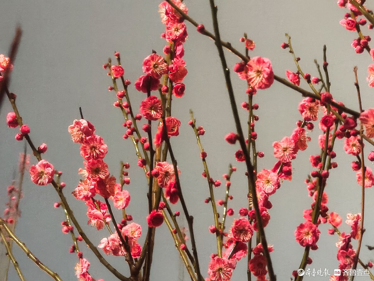 昨夜,春雨淅淅沥沥洒落,小区里的红梅在夜色中愈显娇艳。那枝头的花朵,好似被春雨轻柔摩挲,陶然地绽放着。高军摄