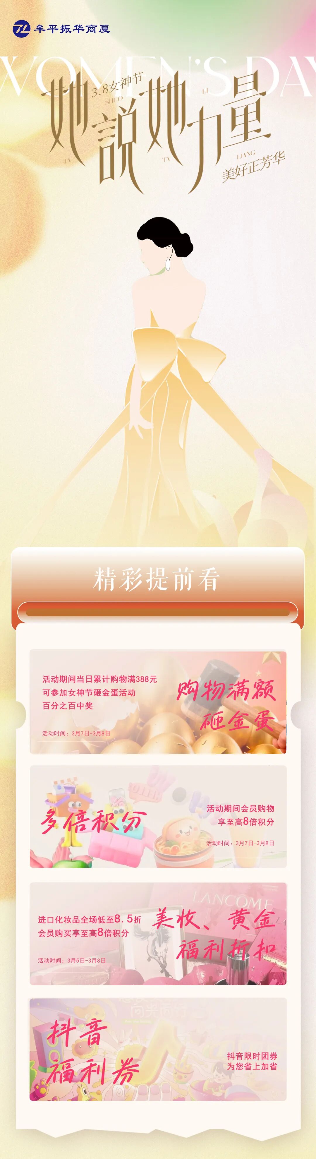 积分翻倍,宠爱加倍!牟平振华商厦三八节VIP专属狂欢来了