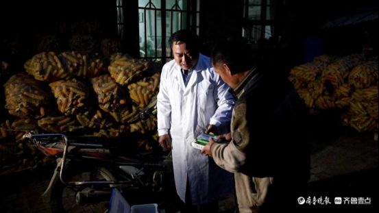 ▲孙树民夜间去贫困养殖户家中给羊看诊并吩咐用药