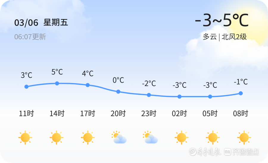 今天是3月6日,星期五,农历正月十八。滨州迎来多云天气,气温较为温和,预计最高气温5℃,最低气温-3℃。全市各区县天气状况一致,均为多云,风力较小,适合户外活动。空气湿度为81%,PM2.5指数为40,空气质量良好。