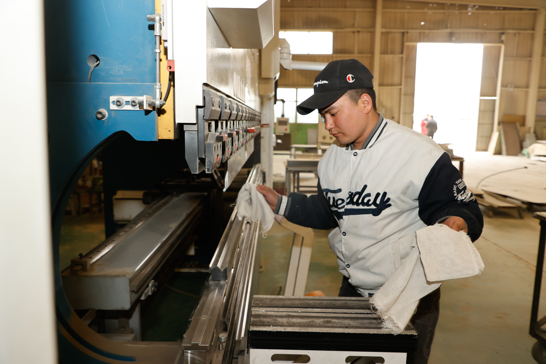 3月4日,喀什某高低压成套设备有限公司加工车间内,工人擦拭机械,准备复工。喀什地区融媒体中心 记者侯立超 摄