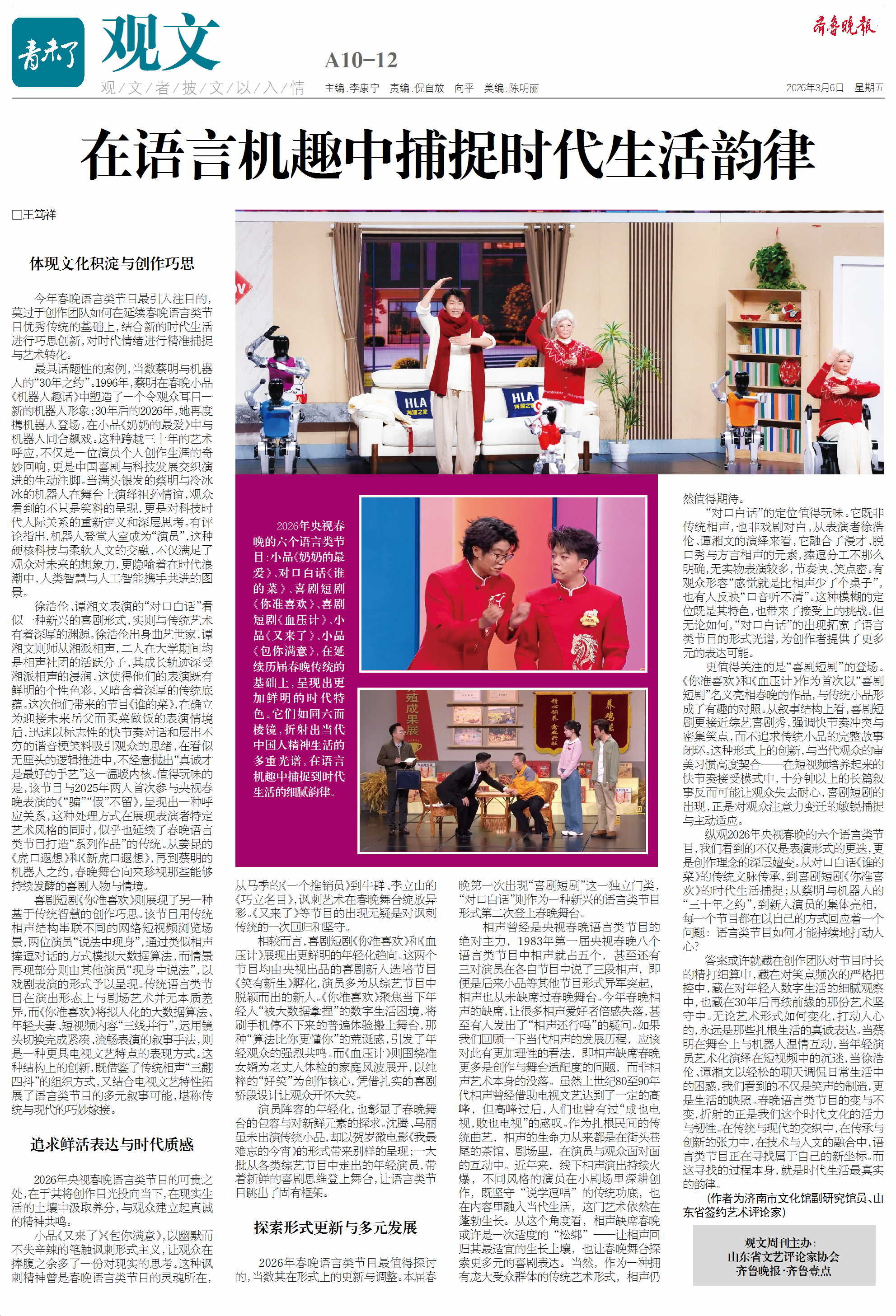 2026年央视春晚语言类节目的可贵之处,在于其将创作目光投向当下,在现实生活的土壤中汲取养分,与观众建立起真诚的精神共鸣。