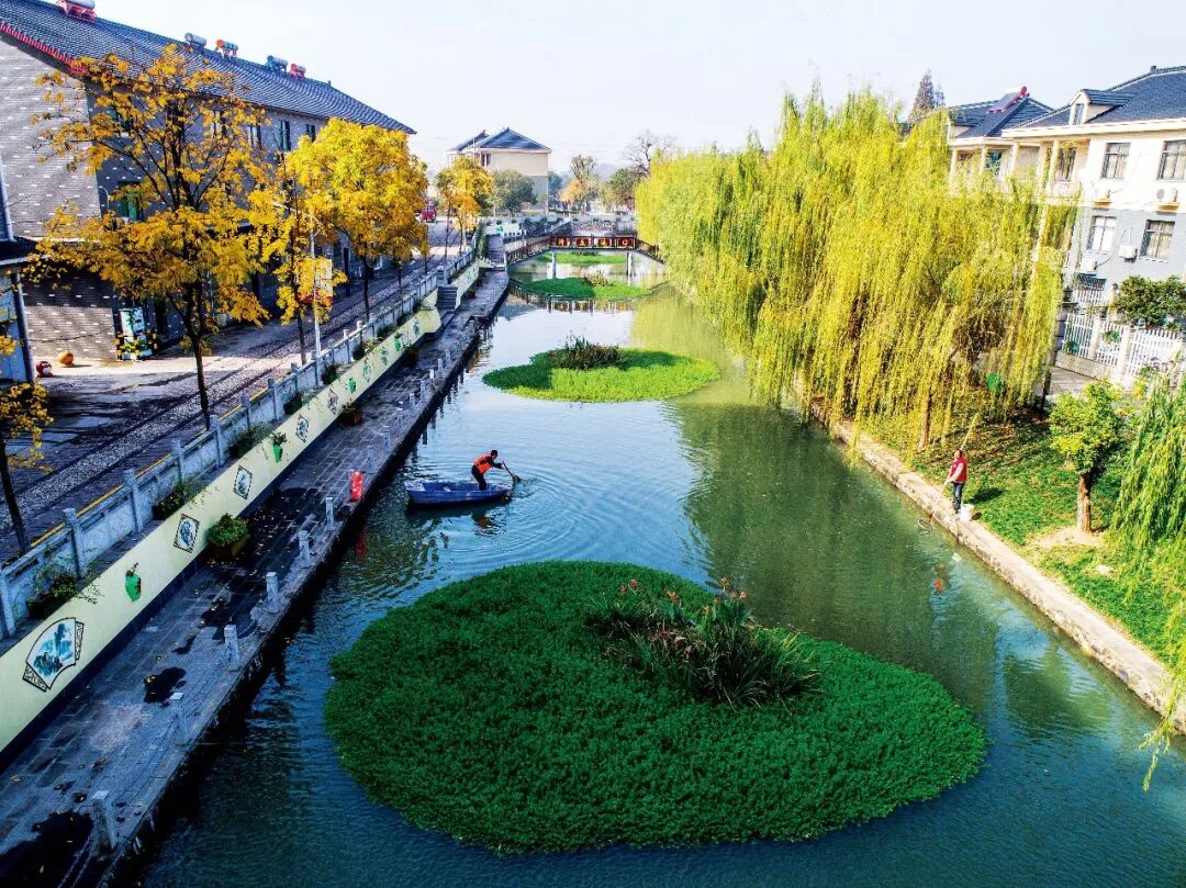 2018年11月28日,浙江长兴县虹星桥镇港口村东港内,河长孙根法在打捞水面漂浮物。