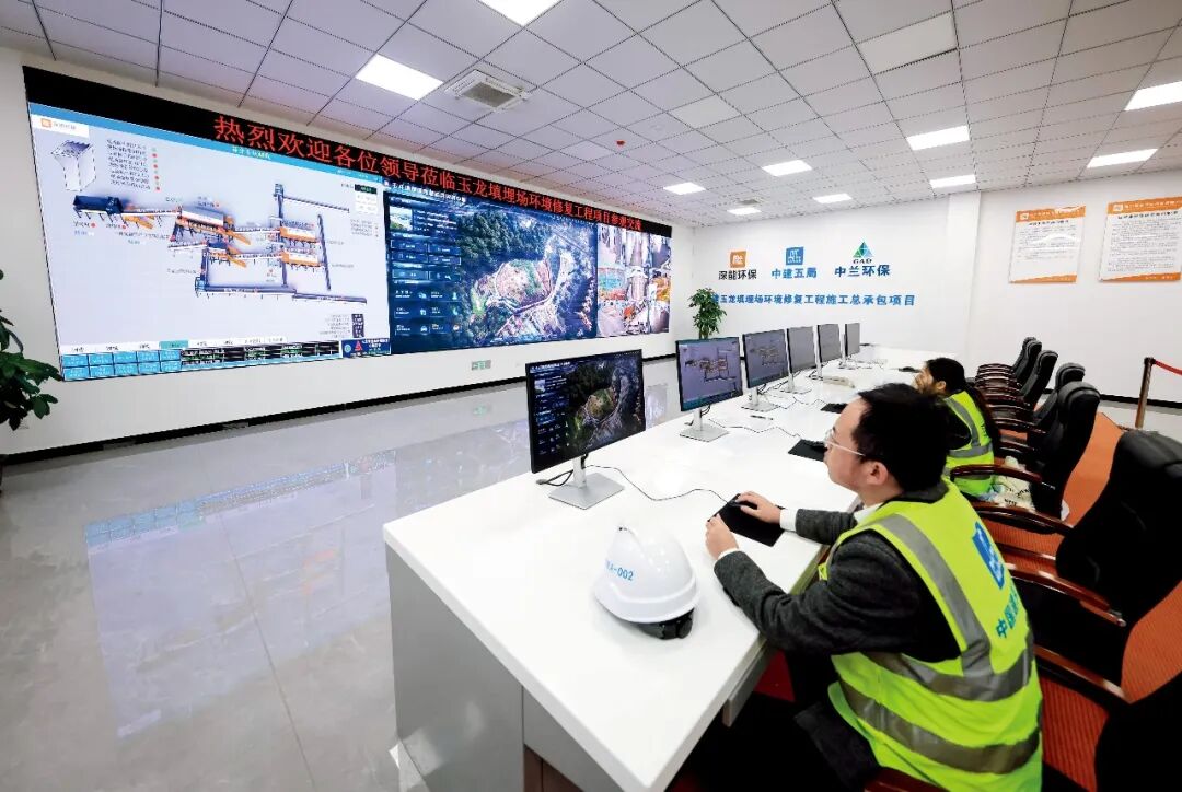 2025年12月25日,深圳中建五局管理人员在玉龙填埋场环境修复工程项目控制中心监测工程情况。位于深圳市罗湖区中心城区的深圳最大的垃圾填埋场——玉龙填埋场建于1983年,1997年停用,2005年底实施封场,2024年7月启动填埋场的“清仓”工程。
