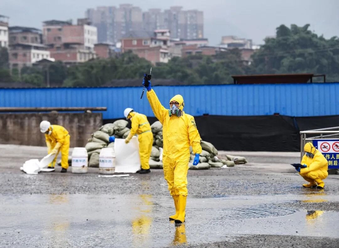 2022年11月9日,在四川省宜宾市叙州区,演练人员进行环境监测工作。当日,川滇渝首次举行长江流域突发生态环境事件应急综合演练。