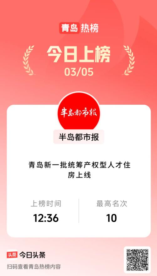 过去24小时内半岛都市报头条号这些作品登上平台热榜↓↓↓稿件《1251套!青岛最新一批市级统筹产权型人才住房上线》登上青岛热榜,最高名次为第十名https://www.toutiao.com/article/7613700765378462234/