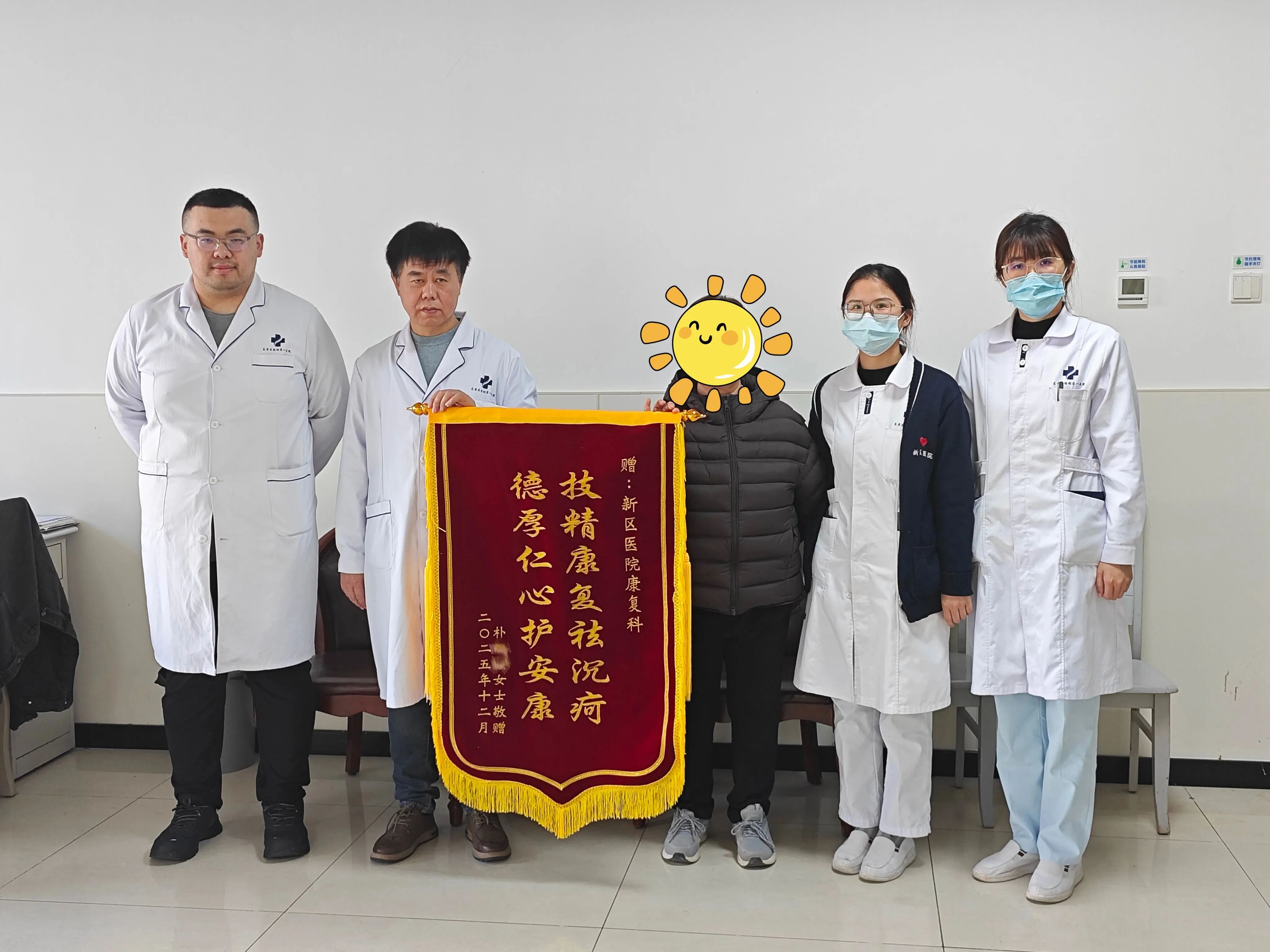 数月前,朴女士因严重腰痛备受困扰,辗转多地求医未果,最终慕名来到东营区胜利第一医院就诊。康复科主任温诚以 “筋骨同治” 的诊疗理念,凭借精准手法为其调理腰椎,疼痛得到明显缓解;中医科主任王振细致辨证施治,开具 “活血通经、强筋健骨” 方剂,进一步巩固治疗效果。两位主任共同为其制定个性化康复方案,诊疗过程中耐心细致、关怀备至,让远在异乡的朴女士感受到家人般的温暖。康复出院之际,朴女士特意为科室送上锦旗,以表达诚挚谢意。