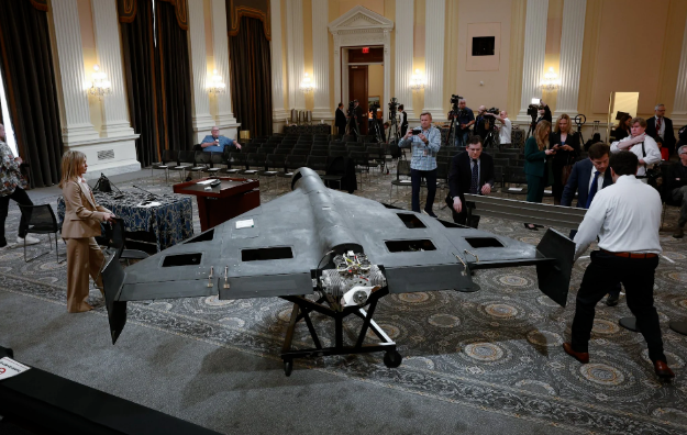一架伊朗“目击者(沙赫德)”-136无人机在美国国会山展出。