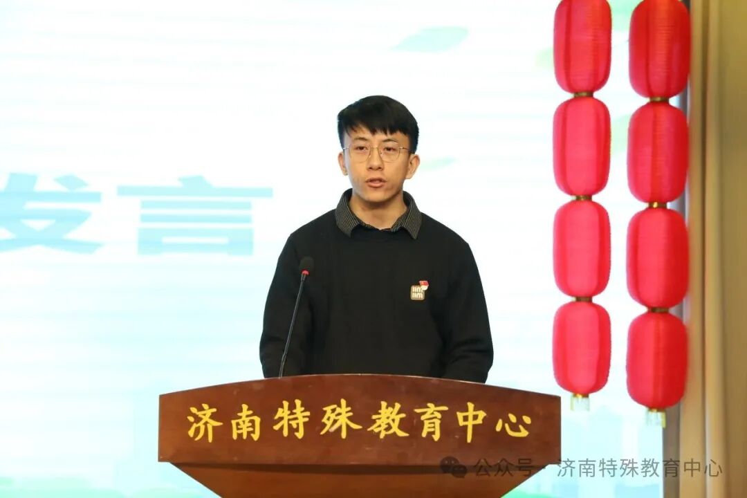 教师代表谭泽林以爱为引,分享了特教教师的坚守与初心,他寄语同学们以积累为阶求知、以自立为翼成长、以热爱为光绽放,鼓励每一位孩子勇敢做自己的英雄。学生代表姜元璋则用真挚的话语表达了全体同学新学期的决心,承诺将脚踏实地学习、崇德向善做人,以昂扬姿态迎接新挑战。王添羽和鲁一鸣同学还带来雷锋精神主题分享,结合校园里的温暖瞬间,讲述对奉献精神的理解,让雷锋精神在特教学子心中落地生根。