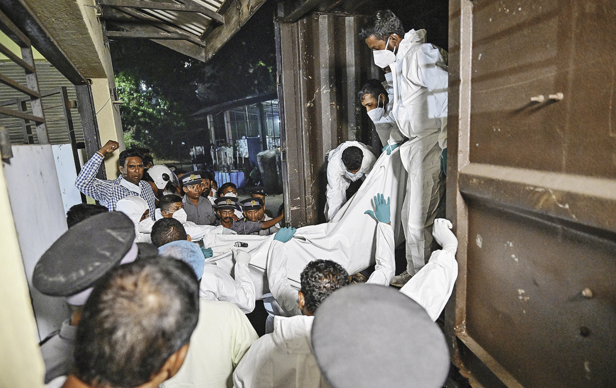 4日,被美军炸毁的伊朗“伊里斯·德纳”号护卫舰的士兵遗体,被安置在斯里兰卡加勒的一家医院。(IC photo)