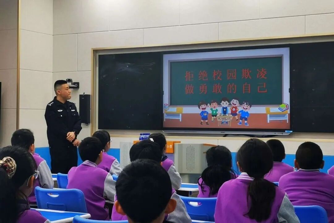 担任法治副校长的公安民警深入校园,围绕防校园欺凌、反诈防骗、交通安全、消防安全等内容,上好“开学第一课”,用鲜活案例普及安全常识,提升师生自我防护能力。