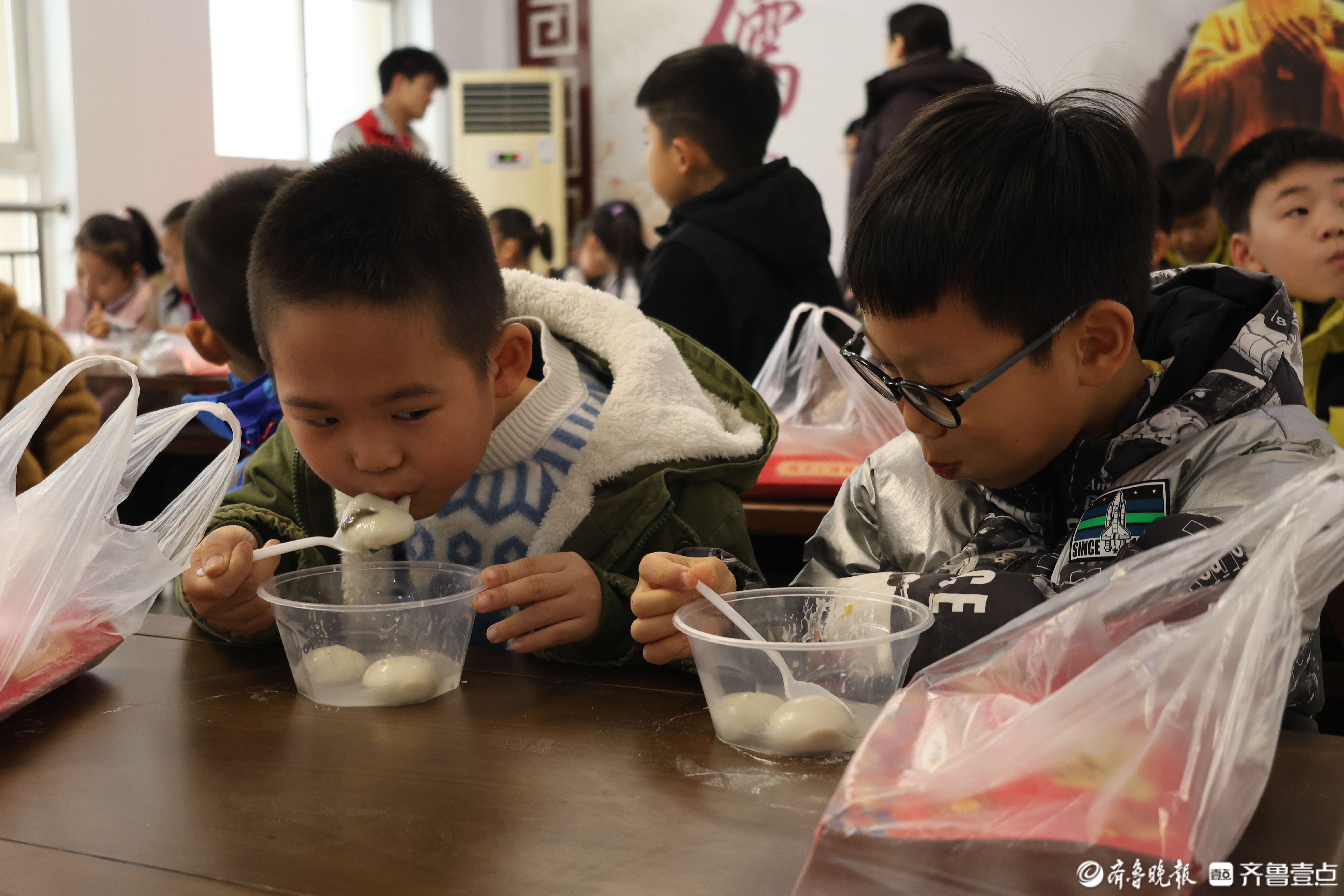 孩子们开心地吃汤圆