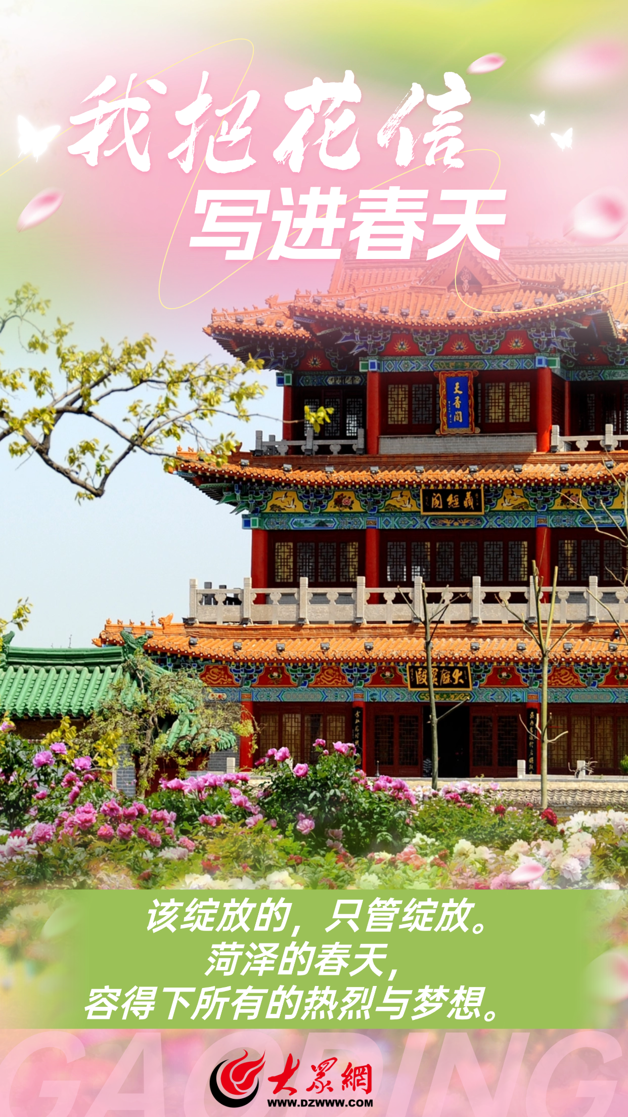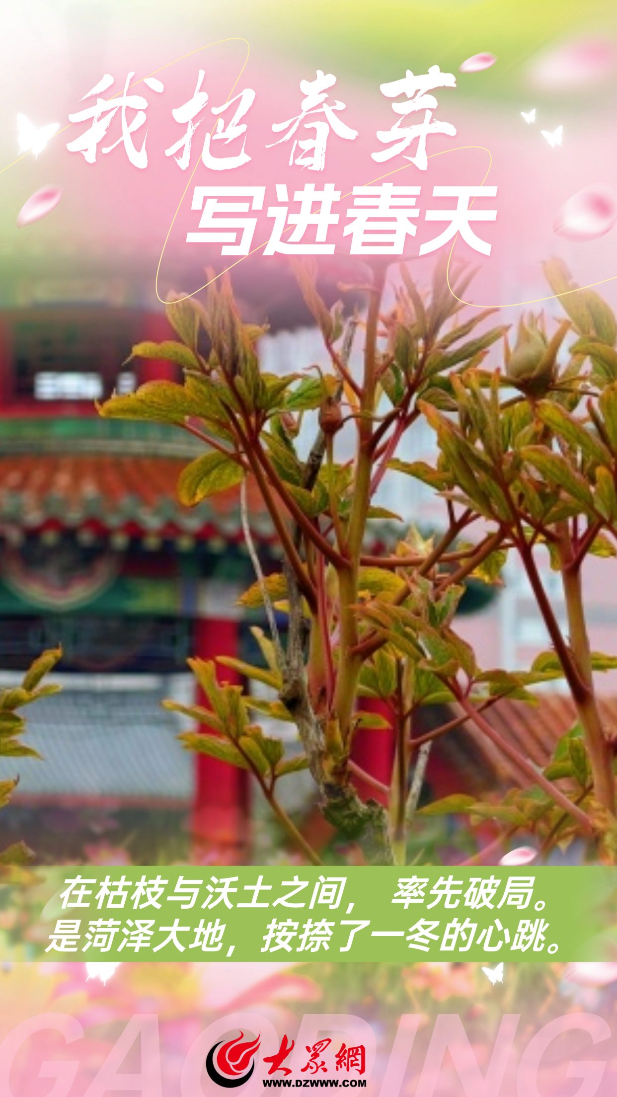 东风送暖,今日惊蛰,当第一缕暖风吹过菏泽大地,驱散了残冬的寒凉,也唤醒了沉睡的花苞。有人说,春天一定要来一趟菏泽,去看万亩牡丹绽放。即使人潮汹涌,也要来赴一场牡丹之约。从牡丹第一捧春芽开始,我把菏泽的整个春天,写进春天。春风入菏泽,诗意满人间。我们把菏泽牡丹写进一行行带着春天气息的“情书”里。来源:海报新闻