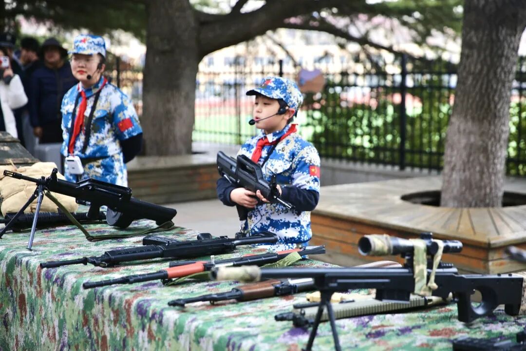 随后,与会人员共同观摩国防教育主题展板、兵器模型陈列、国防科技互动体验、红色育人作品展示等专区,学生讲解员自信从容、讲解细致,充分展现出新时代青少年对国防知识的扎实掌握与深刻认知。