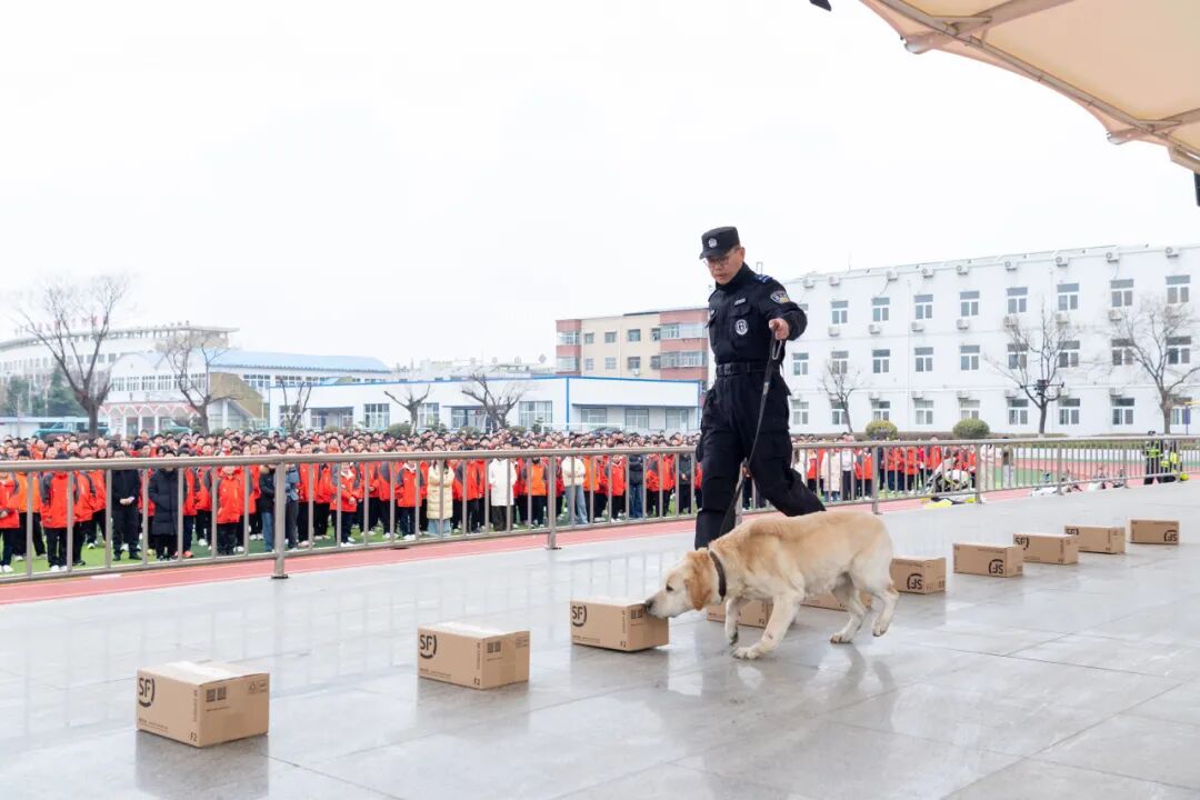 训导员一声令下, 警犬完成随行、扑咬、掷物衔取、搜排爆等科目,动作一气呵成,掌声此起彼伏。