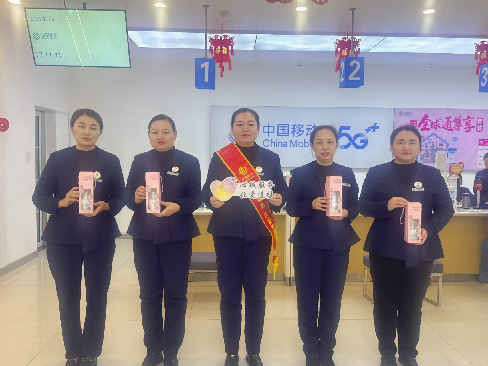 春风送暖,芳菲三月。在“三八”国际劳动妇女节即将到来之际,山东移动东营分公司中心营业厅精心精心打造“情暖半边天”心级服务主题活动,以温馨礼遇、优质服务致敬每一位女性朋友,用真诚与关怀传递节日温暖,彰显移动服务的温度与质感。
