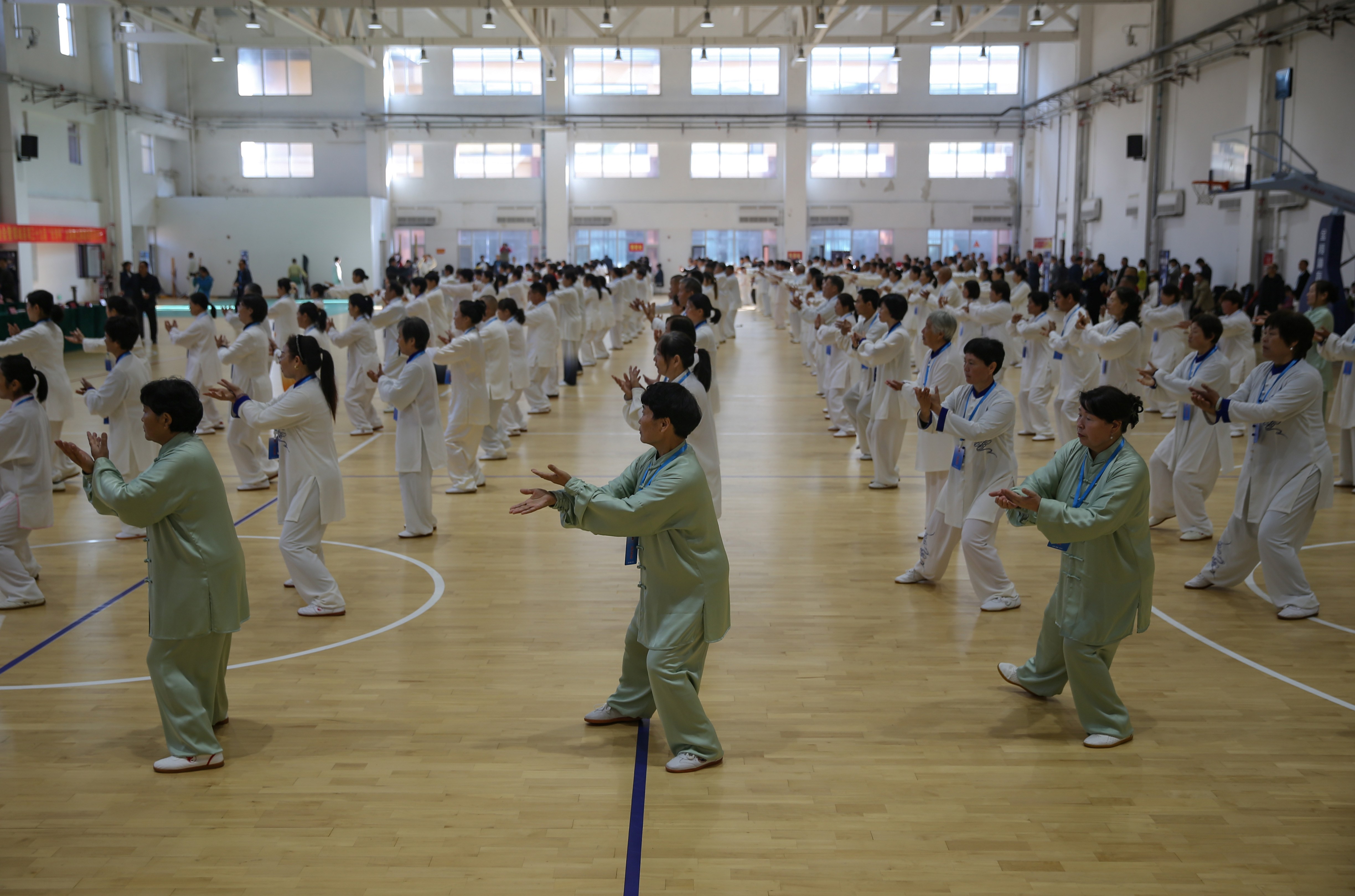 作品介绍:本组作品拍摄于2024年10月26日,太极拳爱好者在山东省临沂市电子科技学校体育馆进行太极拳表演。