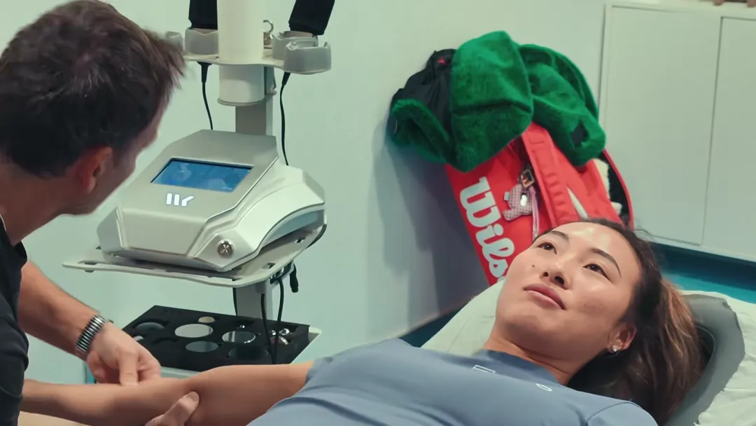 视频中,郑钦文团队的工作人员陪她前往训练馆进行一种手肘康复性的训练,“因为在手术之后,其实很长一段时间,我的手肘都没有办法达到一种正常的屈伸范围,所以说现在看到的是我们经过很多个月努力的结果,才终于可以让手肘就是达到一个普通人的正常的屈伸范围。”郑钦文说道。