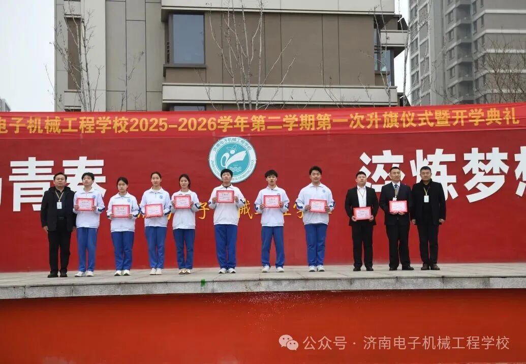 3月5日上午9时,济南电子机械工程学校举行新学期升旗仪式暨开学典礼。