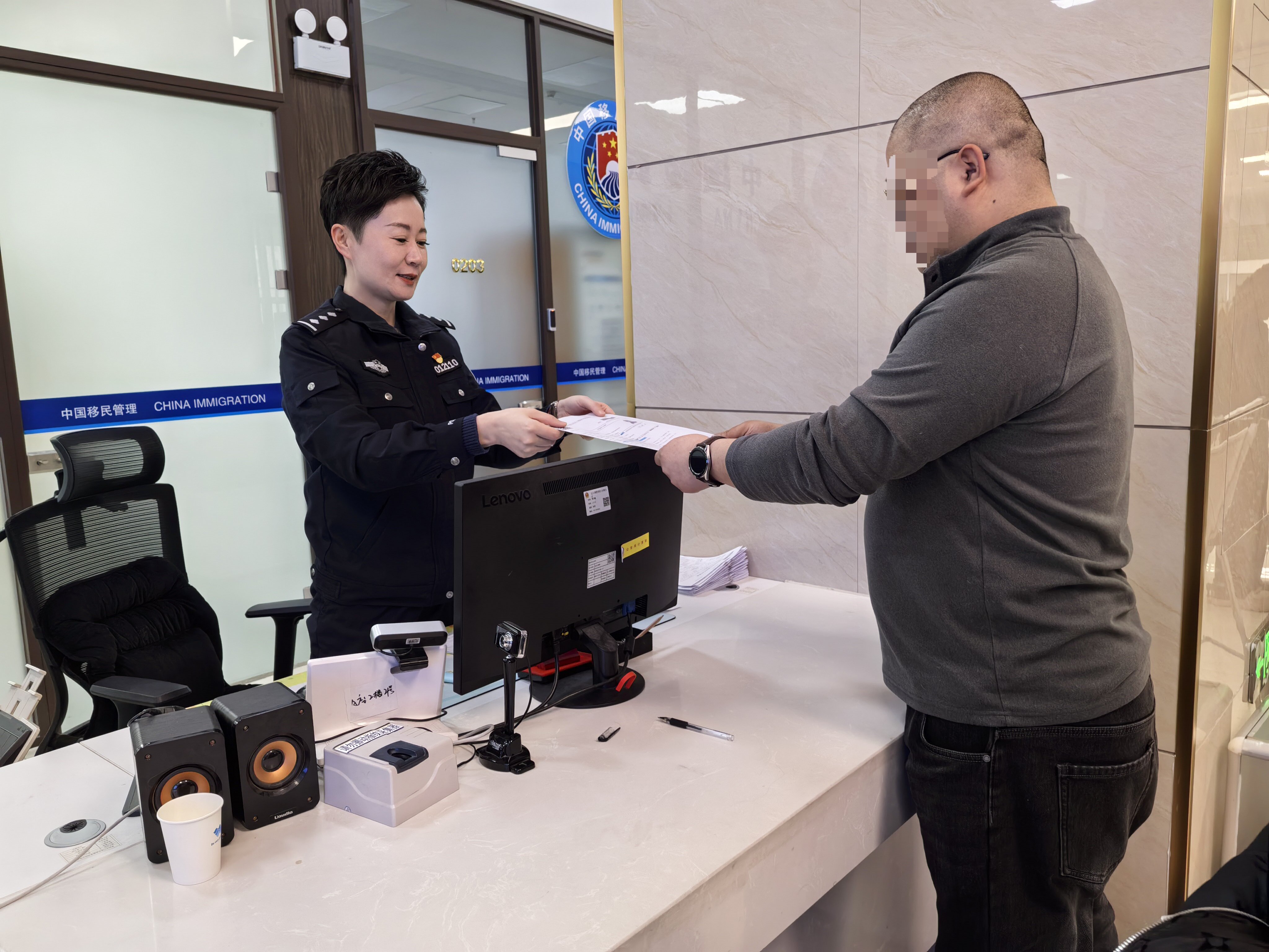 出入境窗口是城市对外开放的“第一印象”,也是女警们践行使命的主战场。面对日均百余人次的办证需求,她们始终以微笑为名片,以效率为承诺。为了让群众“少跑腿、好办事”,她们主动钻研业务,熟练掌握电子签注、异地办证等各项新政,将办证流程拆解优化,把原本需要数日的审批压缩至最短时限。遇到老年人不会操作智能设备,她们耐心指导、全程陪同办理;面对紧急出国求学、商务洽谈的群众,她们开通“绿色通道”,加班加点完成审核制证,用高效服务为群众解燃眉之急。