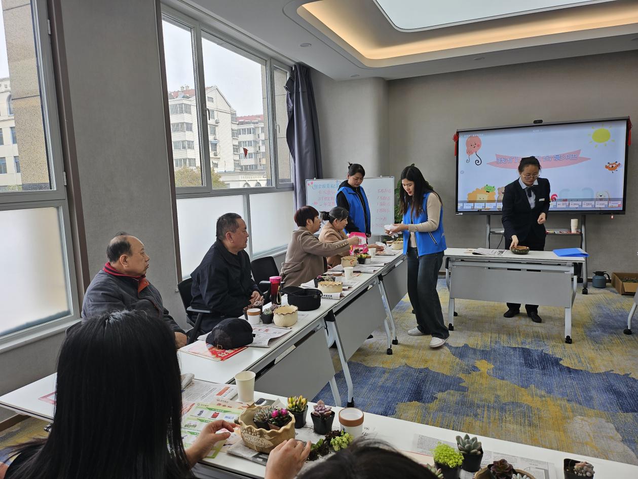 活动氛围温馨融洽,居民们脸上洋溢着幸福的笑容。“以前总觉得插花很难,今天跟着老师学,没想到自己也能插得这么好看!”王阿姨捧着自己的作品笑得合不拢嘴。“社区想着我们,节日里搞这么温馨的活动,太贴心了。”李女士一边调整花枝位置,一边高兴地说,“这样的活动既有意义,又能放松心情,我们都很喜欢!”