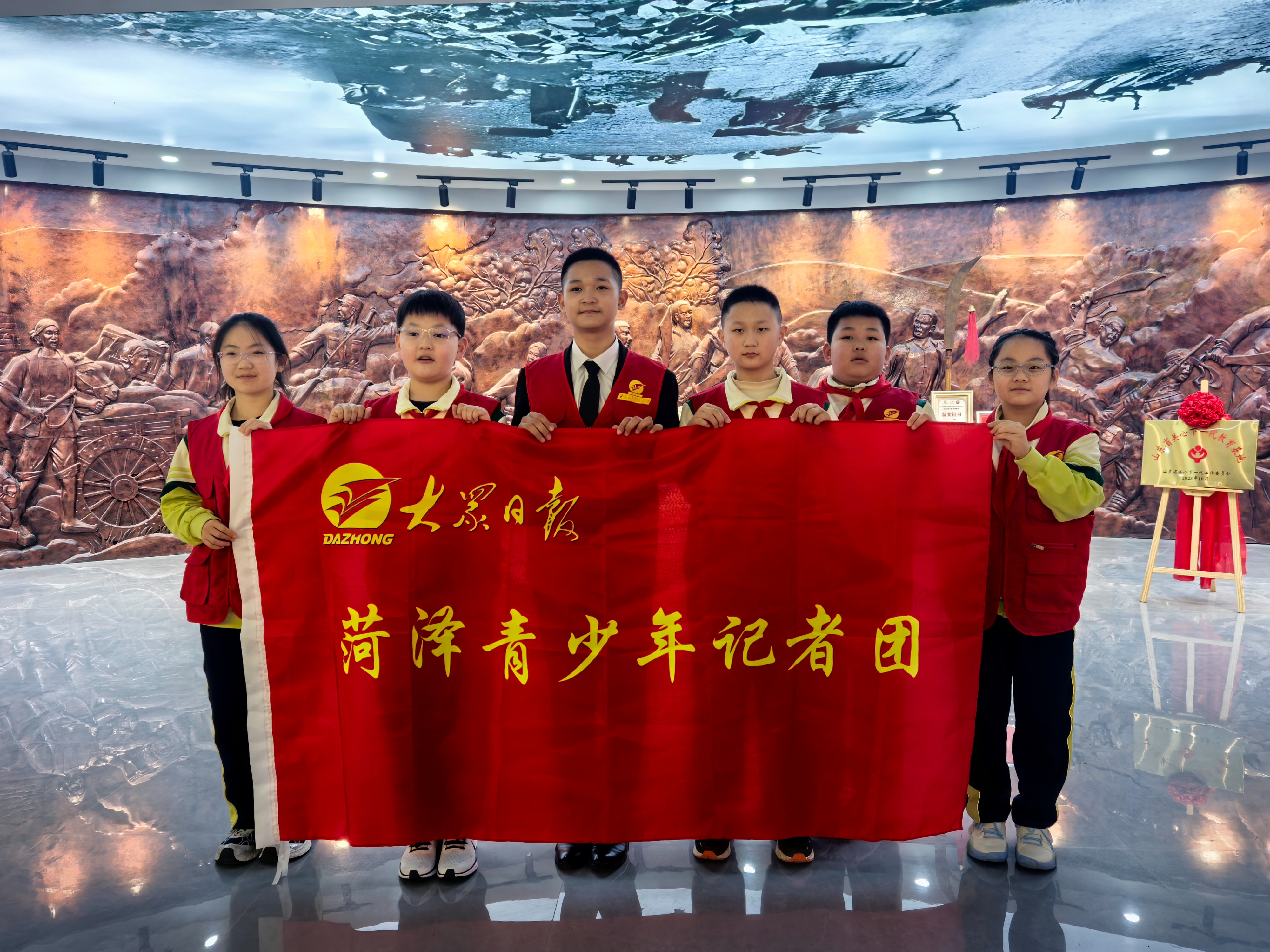 大众日报菏泽青少年记者团团长郭丽介绍:“这次活动,让小记者们沉浸式接受红色文化教育,活动结束后,他们将通过视频、图片、文字,从孩子的视角报道红色教育基地,让更多的青少年看到,让红色基因代代相传。”