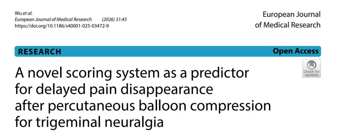 本次发表于《European Journal of Medical Research》的研究,聚焦经皮球囊压迫术(PBC)治疗三叉神经痛后延迟疼痛消失(DD)的风险预测,首次建立了包含 6 项独立危险因素的评分系统,该系统经严格验证,具备良好的鉴别和校准能力,能精准预测患者术后延迟疼痛消失的风险,为术后评估、避免不必要的再次治疗提供了重要的工具支撑,填补了该领域的研究空白。