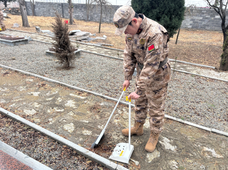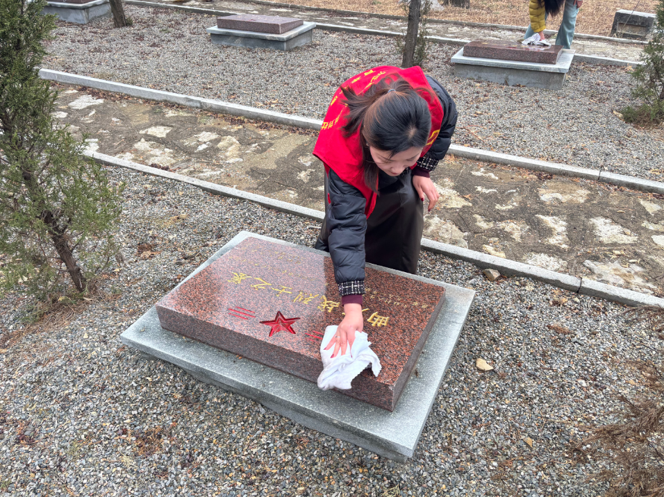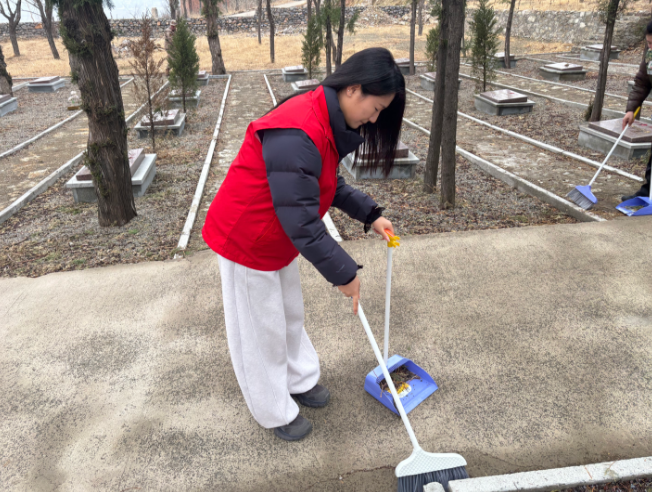 活动现场,志愿者们列队集合,明确分工与纪律要求后,迅速分为两个小组开展志愿服务。大家手持扫帚、抹布等工具,带着队旗有序行动,对烈士墓碑、纪念设施及园区道路进行全面细致的清洁,不放过任何卫生死角,以实际行动表达对革命先烈的崇敬之情。清洁工作完成后,全体志愿者列队肃立,面向烈士墓碑默哀致敬,瞻仰革命纪念设施,感悟先烈们的崇高革命精神,传承雷锋无私奉献的志愿情怀。