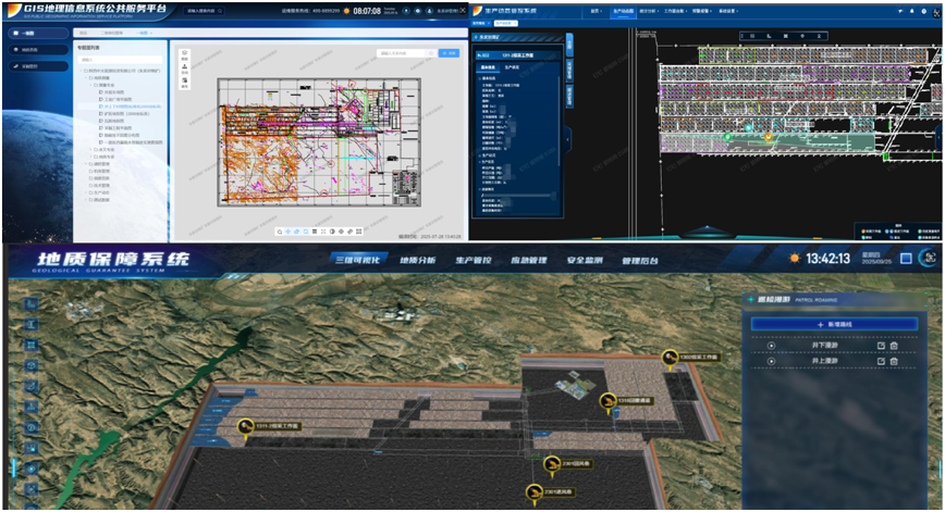 济宁能源GIS项目则聚焦“精细化管控”与“辅助决策”,云鼎科技引入最新GIS三维引擎、进尺定位和空间分析算法,助力企业实现矿图协同绘制报审、采掘生产管控、地质灾害防治预报的动态可视化管理。在复杂地质的采掘生产中,系统有效提升了煤层智能开采的安全性与效率,成为地市级能源集团数字化转型的典范。