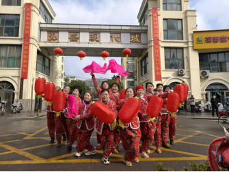泥家村社区的"龙舞元宵 福满泥家"活动尤为引人注目。社区主干道上锣鼓齐鸣,舞龙队身着传统服饰,表演盘龙、游龙等经典套路。老党员为龙首点睛的仪式庄重肃穆,青少年体验试舞小龙的环节更让非遗文化在互动中传承。
