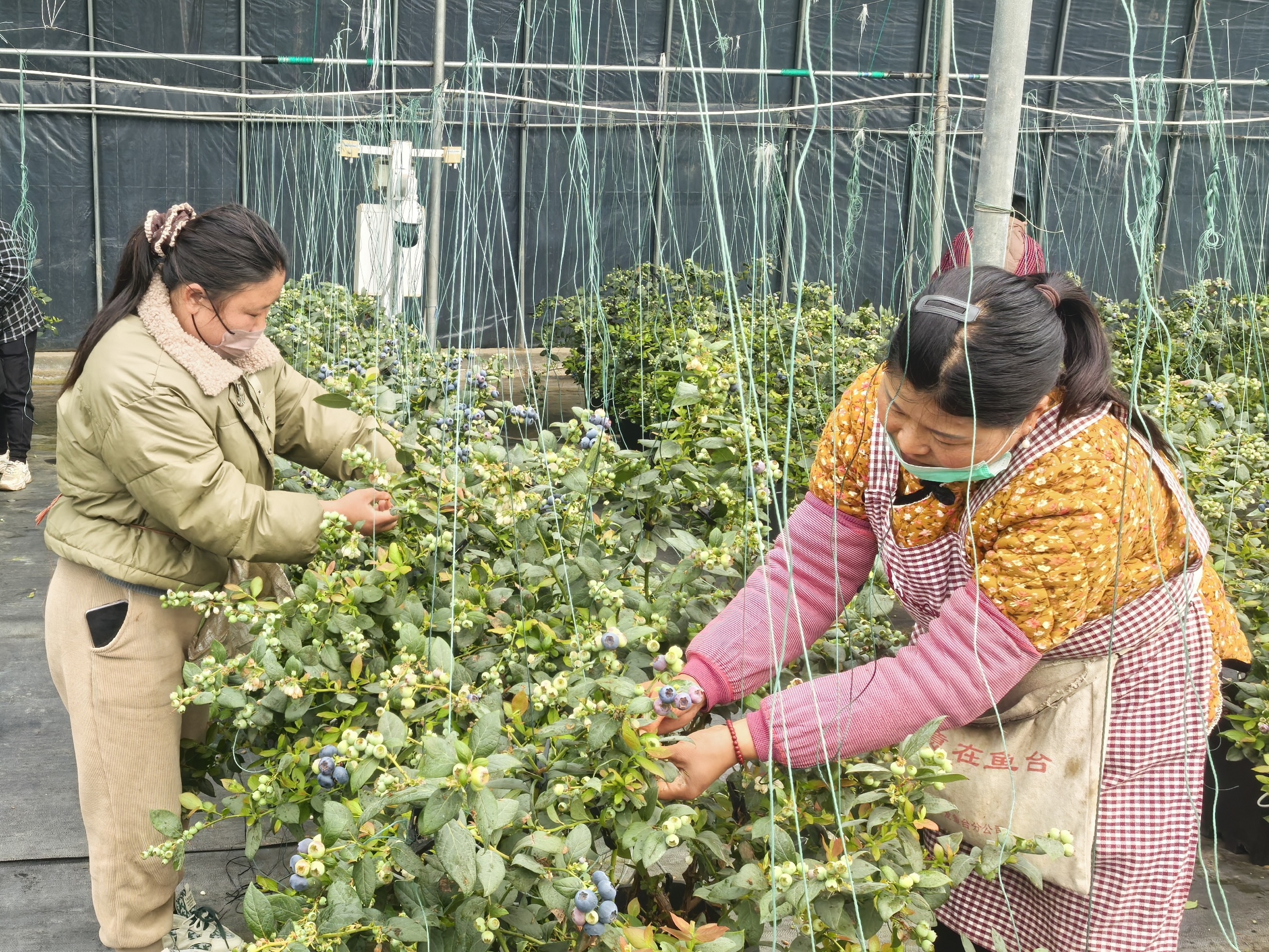 蓝莓的丰收,不仅给种植户带来了收益,也为周边村民创造了大量的就业机会。盛果期时,基地每天能吸纳100余名村民务工,让她们实现了“家门口”增收的愿望。