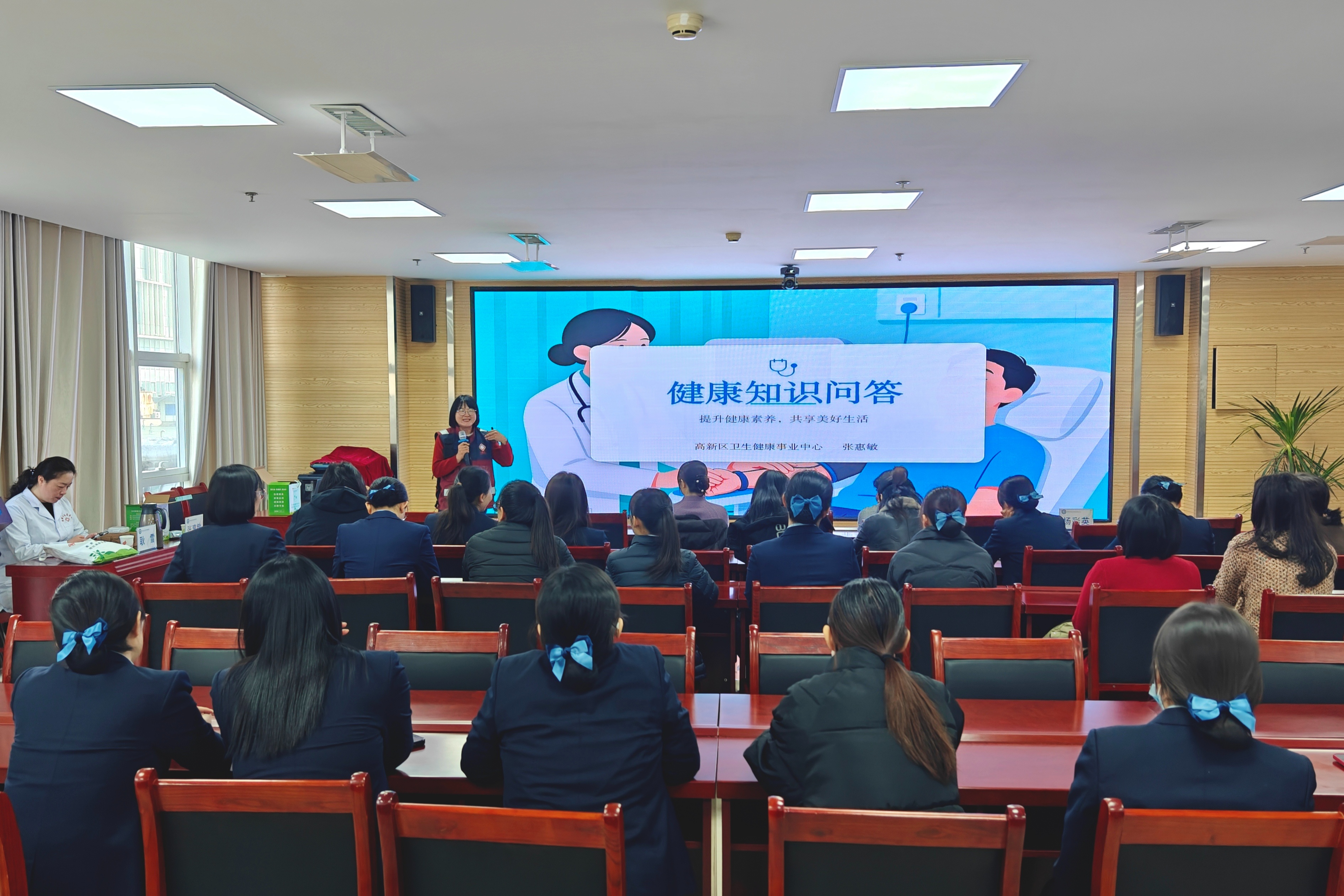 随后,淄博高新区卫生健康事业中心疾控科的张惠敏,以互动问答的形式,普及常见疾控保健知识,现场氛围热烈,女职工们积极参与、踊跃抢答,在轻松愉悦的氛围中掌握了实用的健康防护技巧,真正做到“学知识、强体魄”。