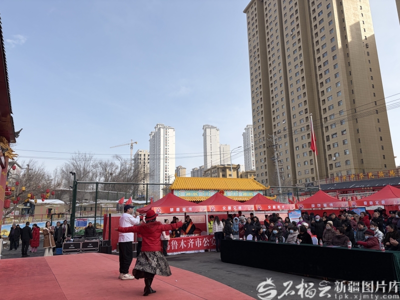 现场文艺志愿者为居民提供歌舞表演志愿服务。石榴云/新疆日报记者 吕伊晗摄