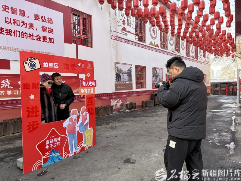 活动期间,来自新疆日报社(集团)的青年志愿者现场为群众提供爱心拍照服务,用一张张精彩照片定格居民的幸福笑容。