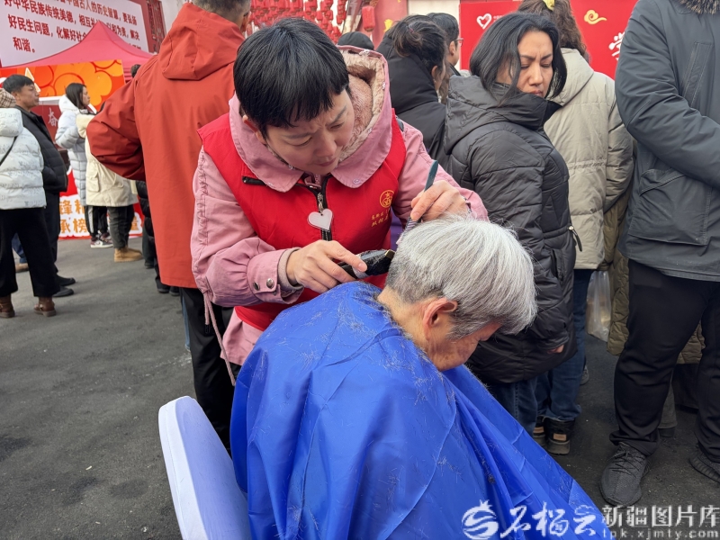 “双拥兵妈妈”志愿服务队为老人理发。石榴云/新疆日报记者 吕伊晗摄