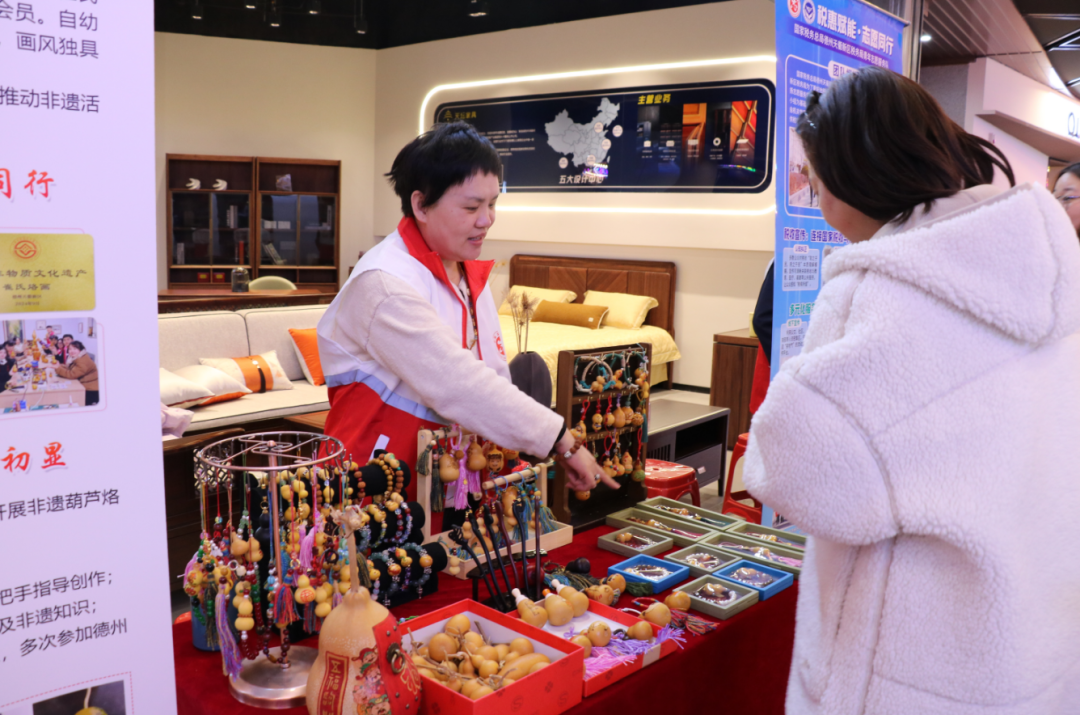 以火为墨,以铁为笔。崔氏烙画非遗代表性传承人崔延霞的葫芦烙画摊位前分外热闹。勾线、晕染、压烫,黑白灰的山水、花鸟、书法图案跃然葫芦之上,惟妙惟肖的作品吸引不少居民驻足观赏、请教技艺。