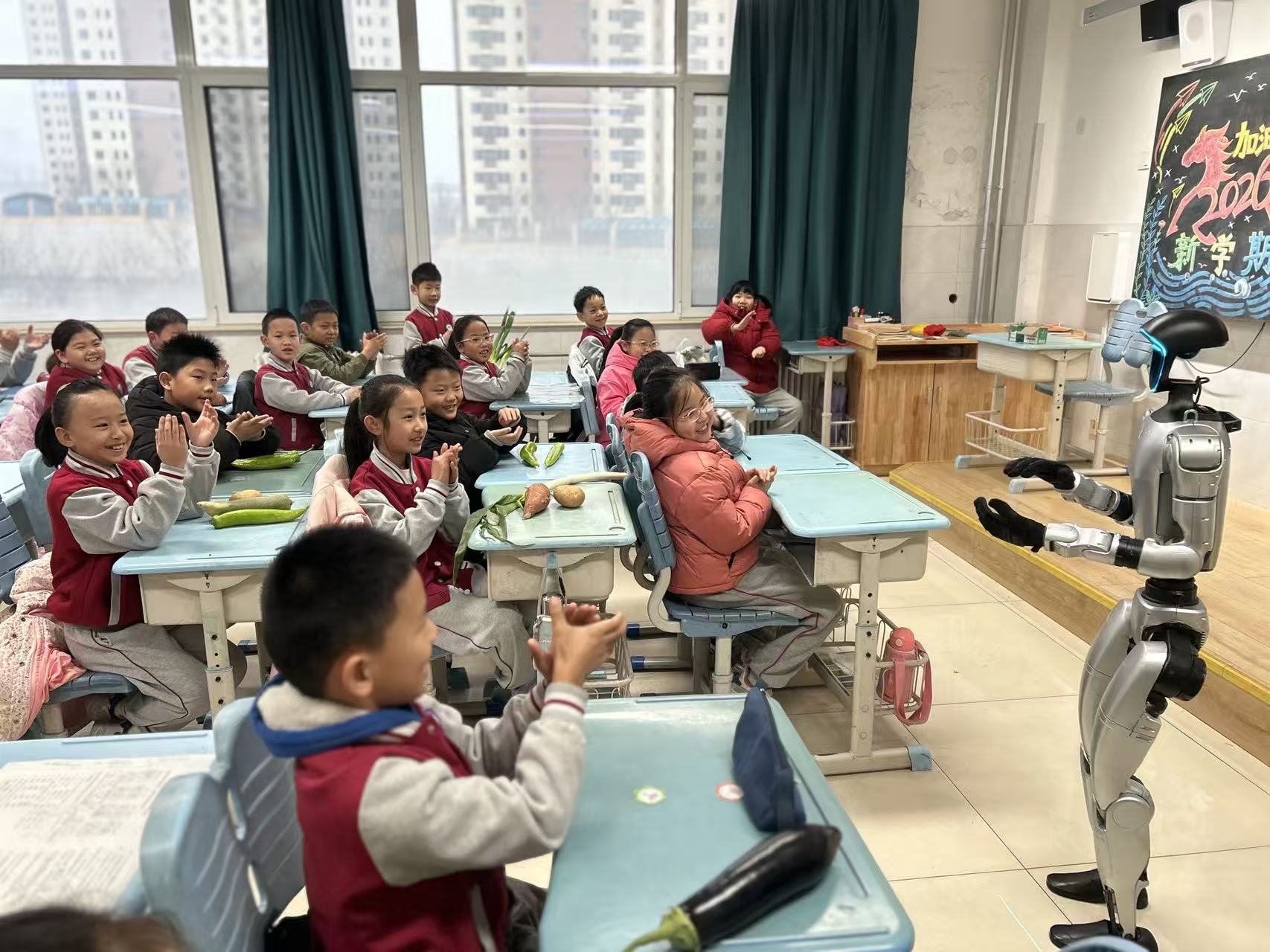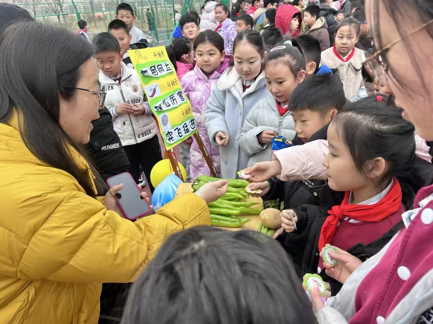 乐兑嘉年华同步开启,同学们手持“四正卡”,参与蔬菜兑换、图书互换、科学实验体验等趣味项目,在快乐中收获惊喜、学会分享。开学第一课干货满满,通过寒假生活分享、挫折教育游戏、校园安全教育及机器人进班互动,帮助同学们快速收心,调整至最佳学习状态。