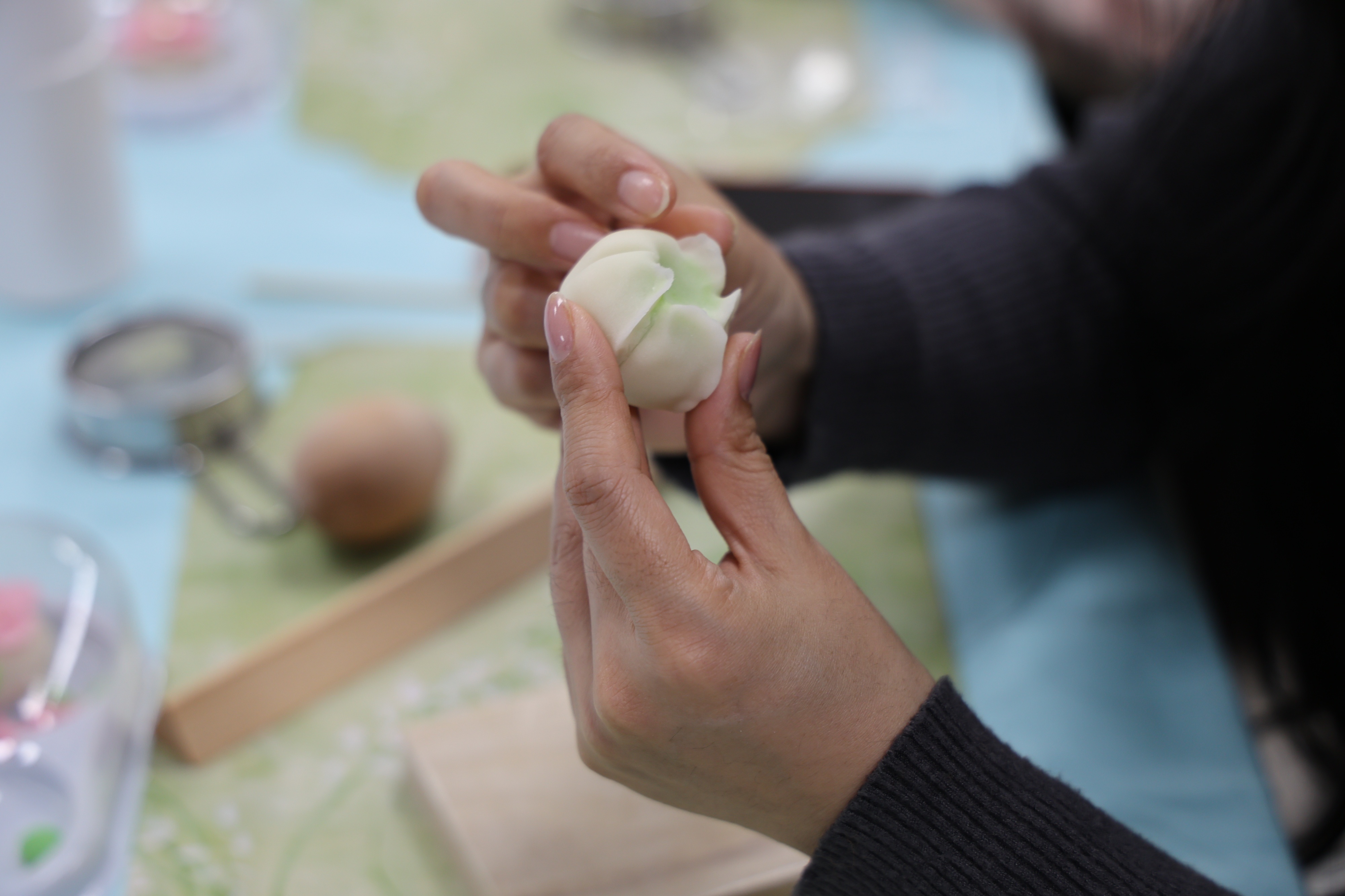 活动中,非遗传承人张小敬老师细致讲解唐菓子的历史渊源、传承脉络与制作工艺,从唐代宫廷茶点的雅致底蕴,到天然色素运用、花果塑形技巧,让古老非遗技艺鲜活呈现。实操环节,女职工们凝神专注,跟着老师的示范揉、捏、压、剪,在指尖流转间感受手工温度。大家相互切磋、交流巧思,一枚枚造型精美、栩栩如生的唐菓子次第成型,既承载着吉祥寓意,更彰显着匠心巧思。