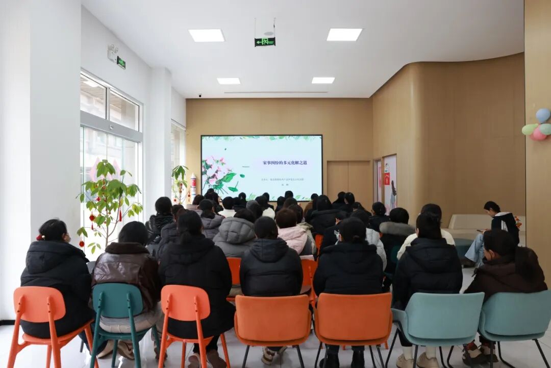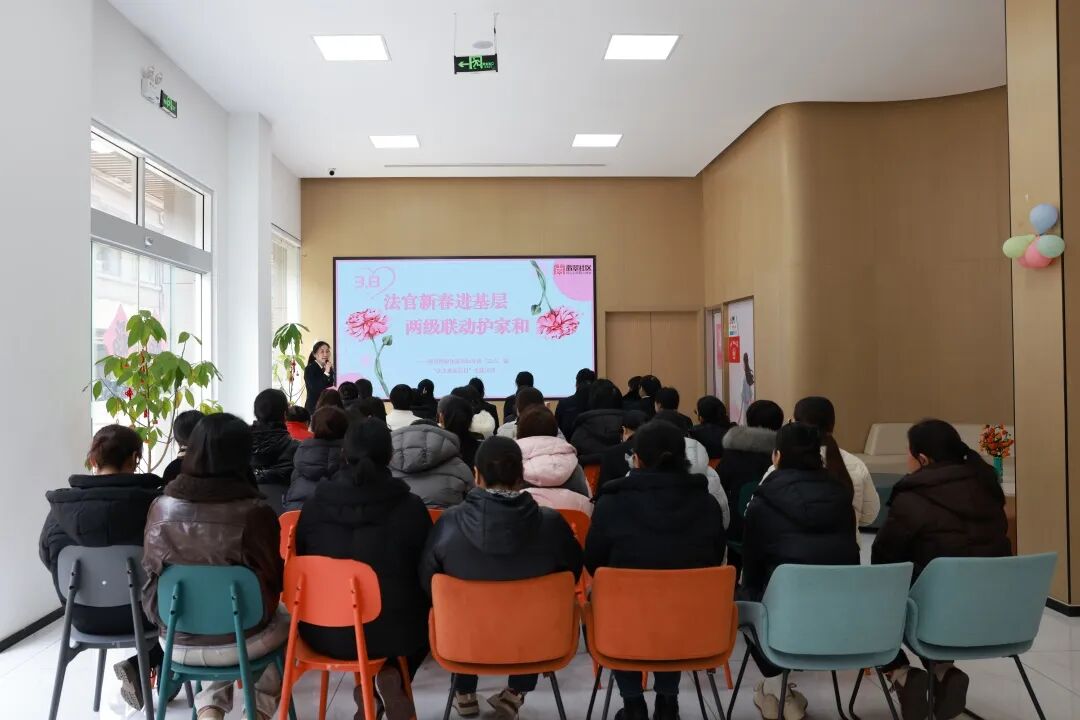 活动伊始,女法官们走进高新区家庭教育指导站、城市书房、高新区法院诉调对接工作站(中心城区),详细了解高新区法院联合高新区群团办、中心城区办公室将司法触角延伸至群众“家门口”、推动家事纠纷前端化解的创新实践。