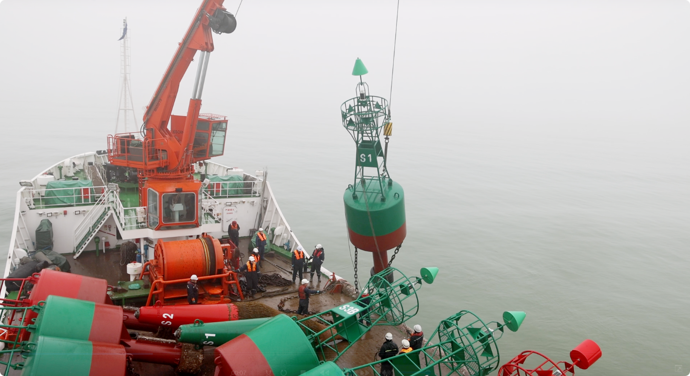 春季航标作业主要是在每年初海冰消融后,将北方海区抗冰性能更好的冰标更换为目视效果更好的灯浮标,从而为船舶进出航道提供更为精准的航行指引。